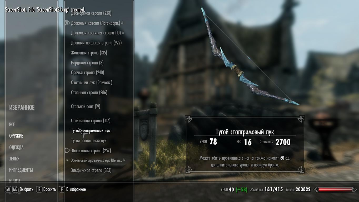 Данная модификация добавляет в игру добавляет 10 луков (с учётом дополнений Dawnguard и Dragonborn). Все имеют характеристики, отличные от их классических аналогов. В целом луки перебалансированы: одни характеристики улучшены, другие ухудшены. В зависимости от типа лука величина пробития брони также отличается: от 25 ед. у орочьего лука до 70 ед. у драконьего костяного. Создаются в кузнице по своим рецептам, улучшаются на точильном камне, как обычно.
