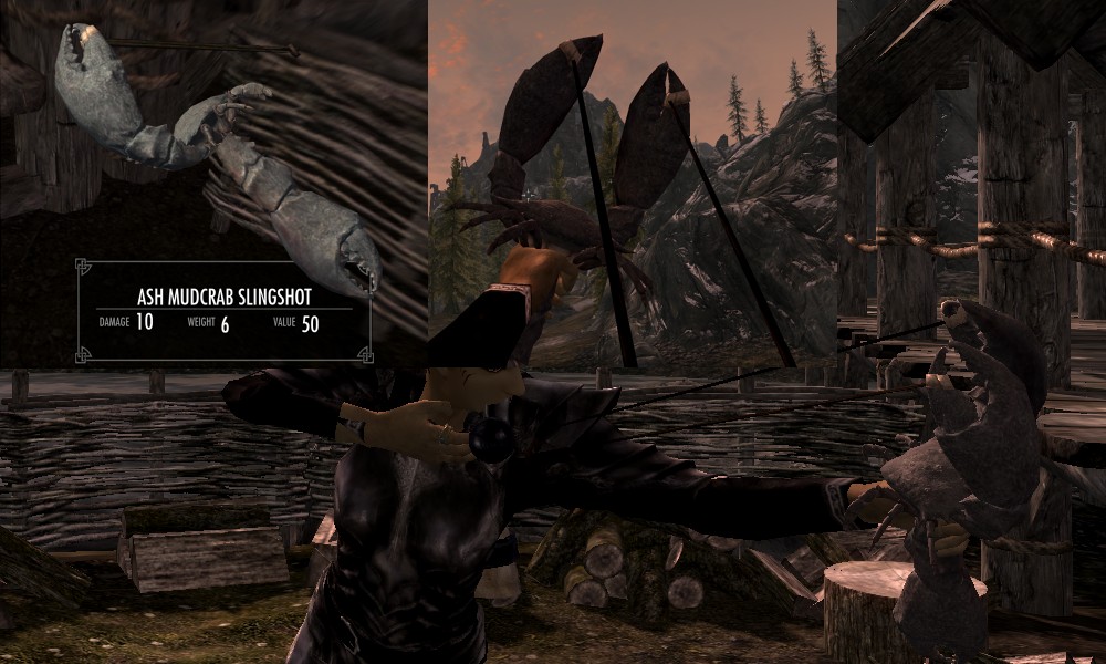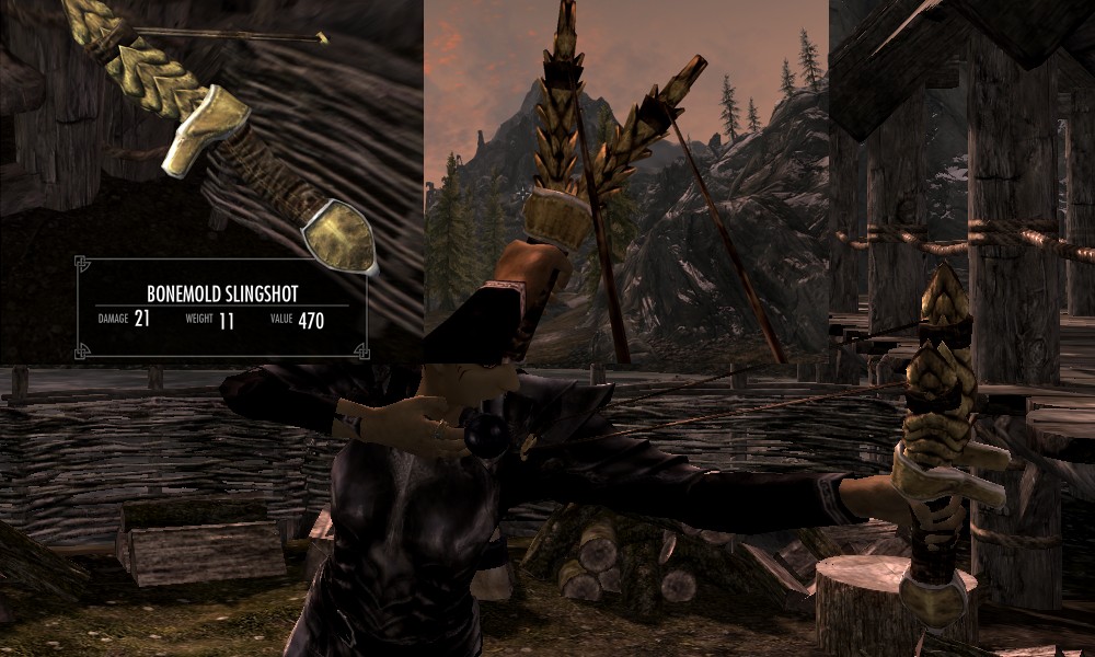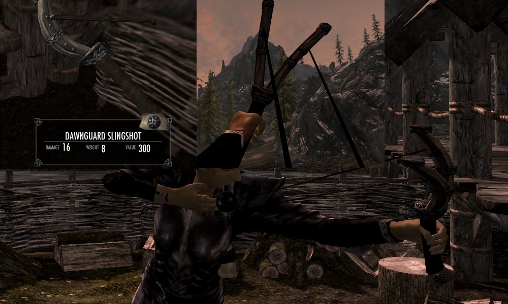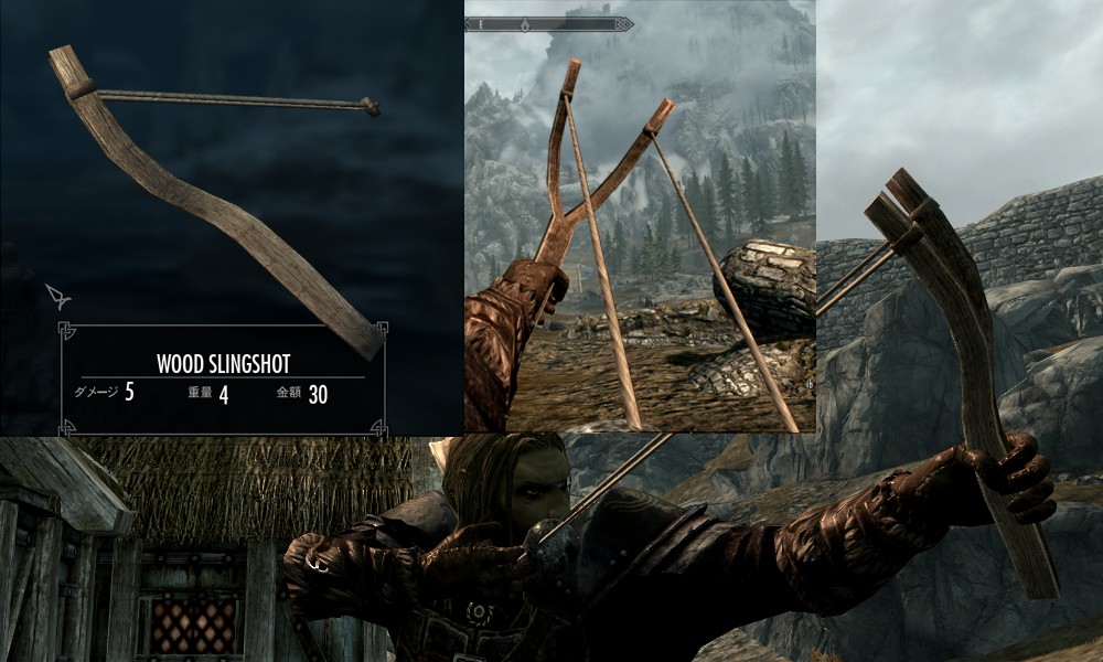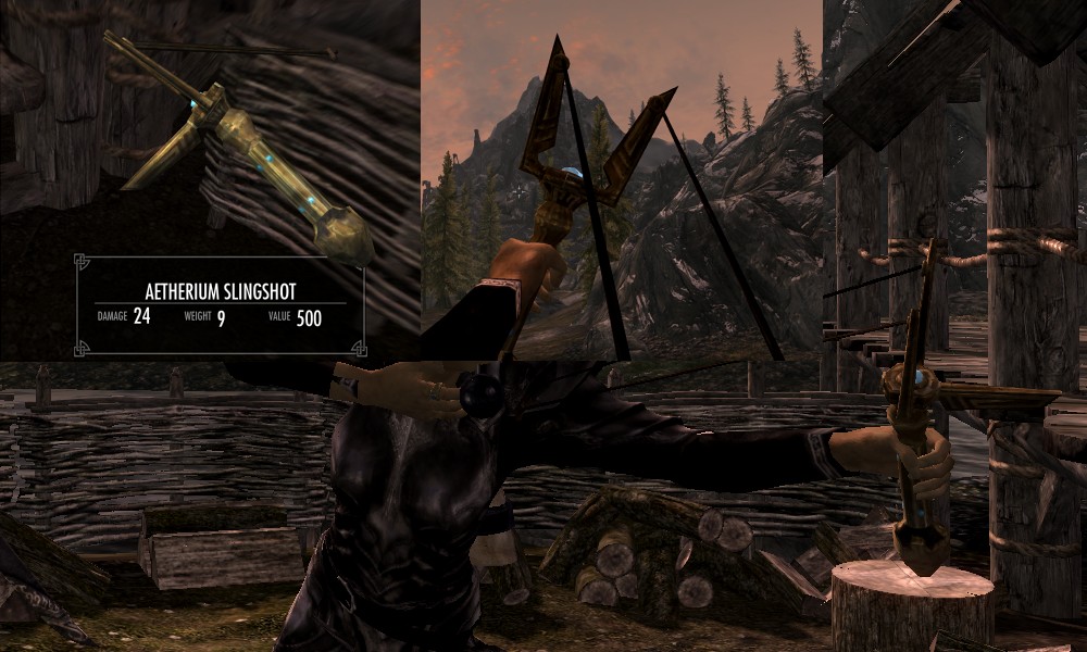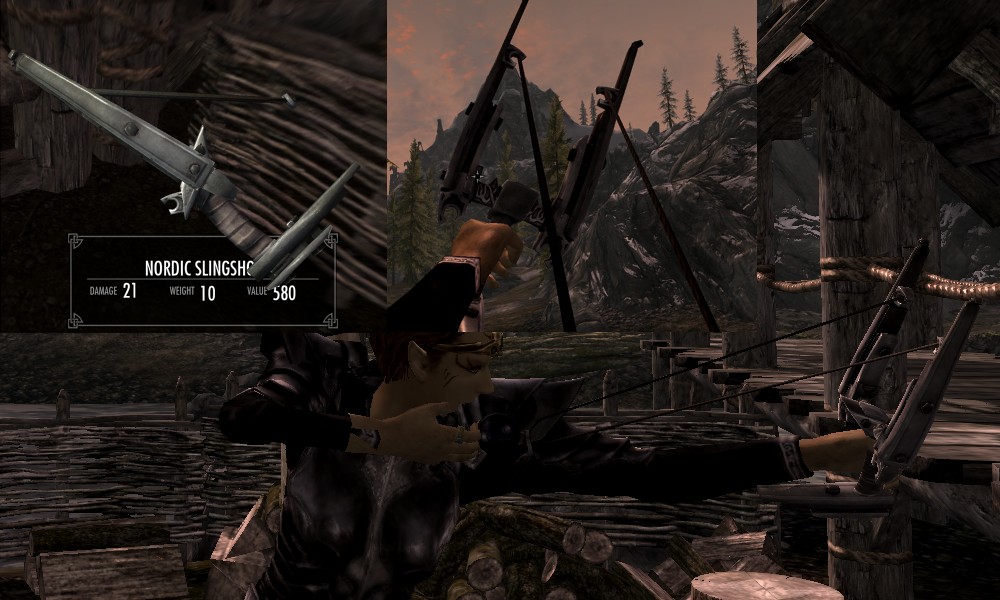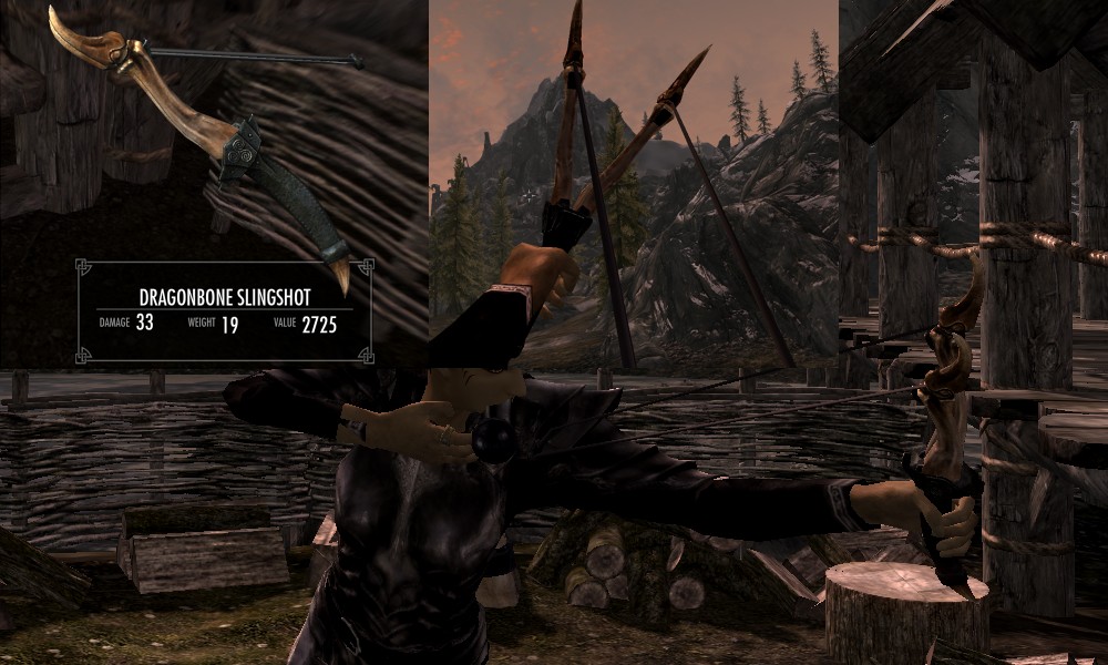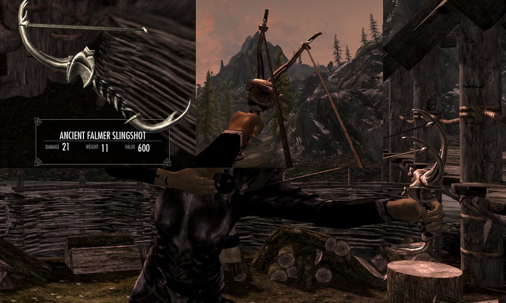 Мод добавляет в Скайрим множество видов рогаток, а также снаряды к ним в виде шариков из различных материалов. Купить рогатки и снаряды вы сможете у босмера-торговца Линора в Ривервуде, днем работающего на лесопилке, а ночью отдыхающего в таверне "Спящий великан". Также вы сможете изготовить шарики в доменной печи.
