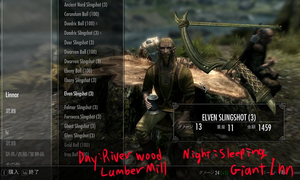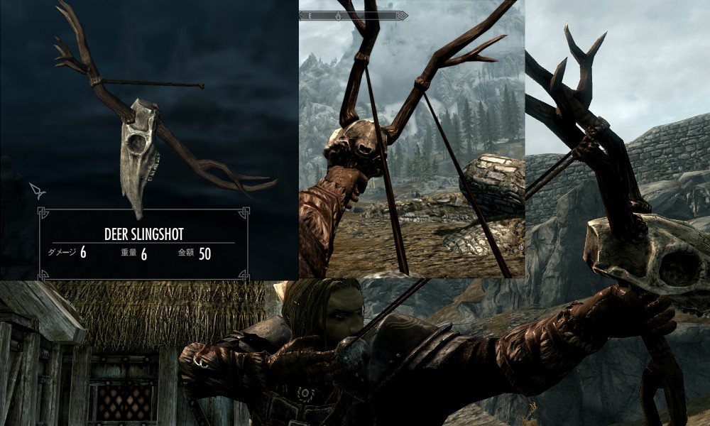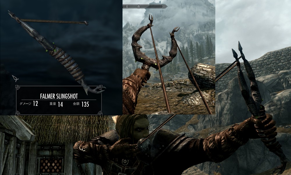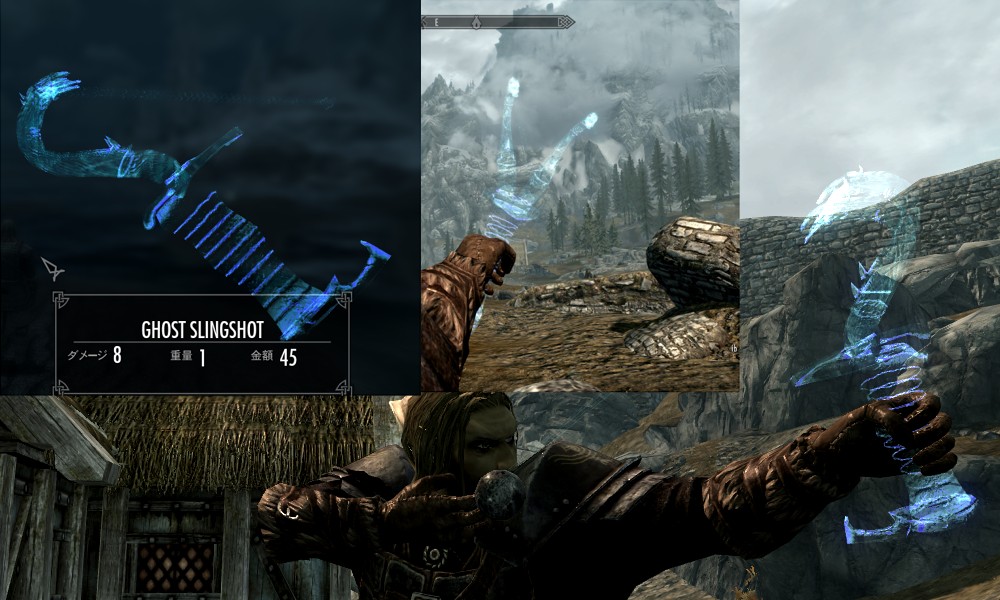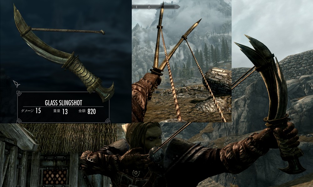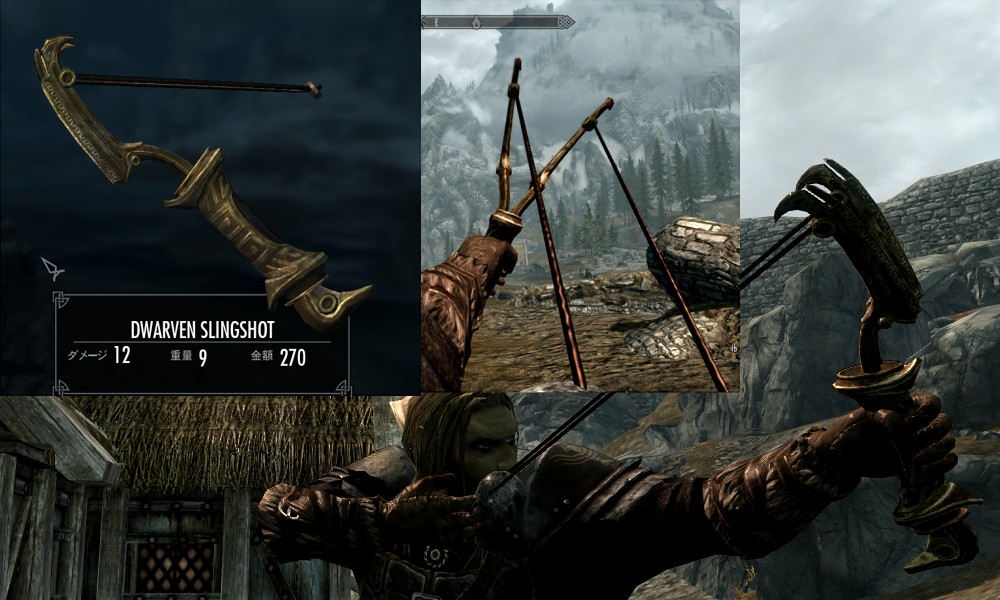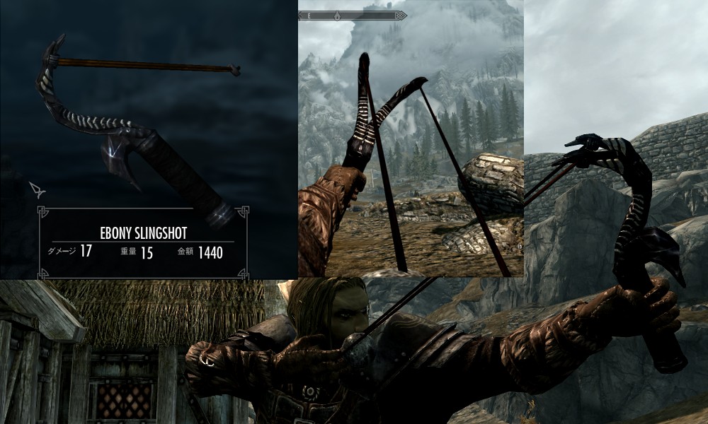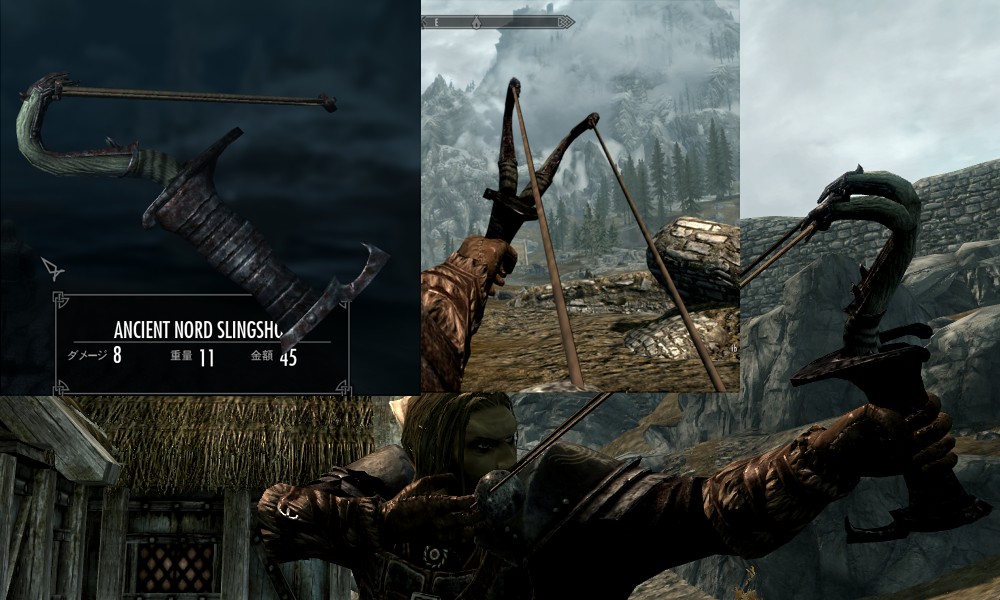 Мод добавляет в Скайрим множество видов рогаток, а также снаряды к ним в виде шариков из различных материалов. Купить рогатки и снаряды вы сможете у босмера-торговца Линора в Ривервуде, днем работающего на лесопилке, а ночью отдыхающего в таверне "Спящий великан". Также вы сможете изготовить шарики в доменной печи.