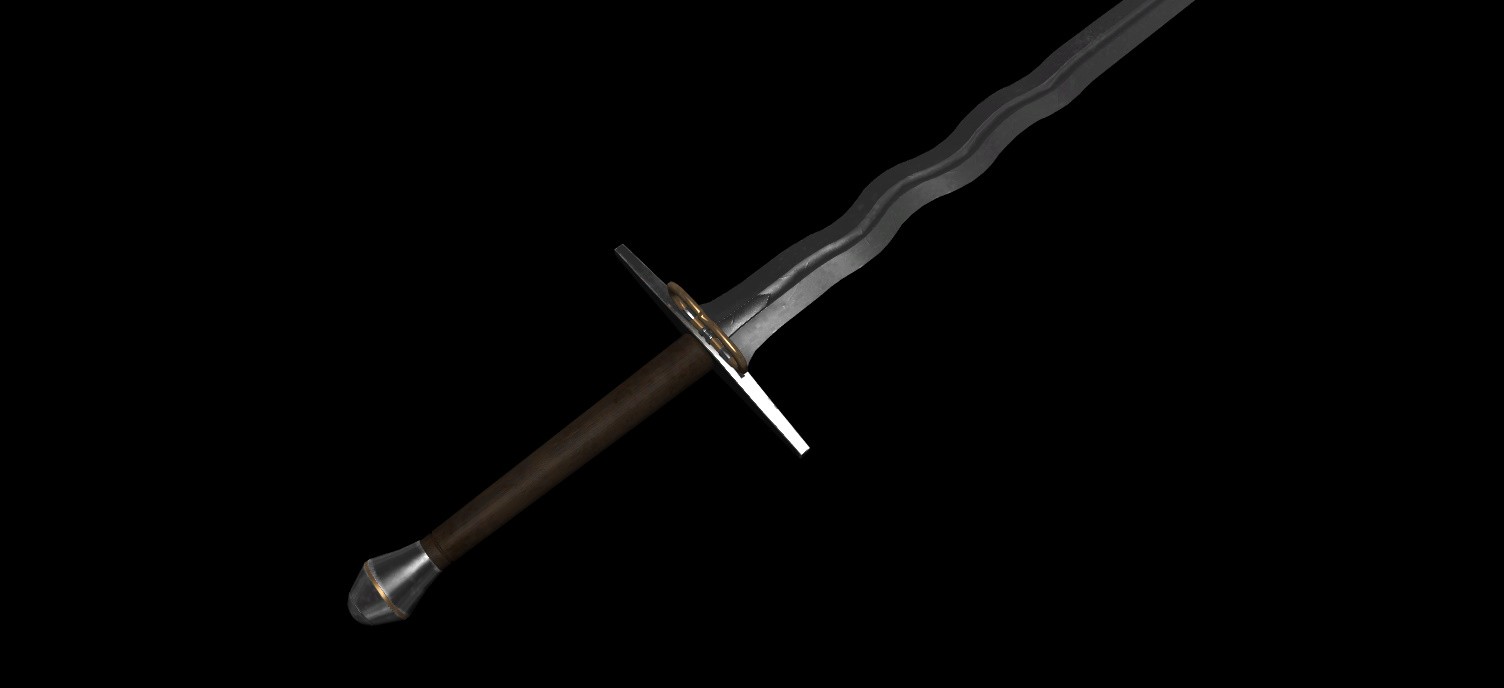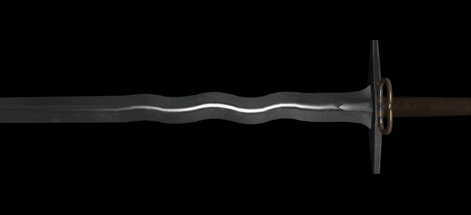 Мне лично кажется, что это просто полуторный фламберг. следовательно волны у гарды вполне могут иметься за отсутствием рикассо. Хотя, смысла волн у фламберга в части предназначенной для блока я не вижу (1/3 от гарды для блока, 2/3 от гарды затачивалась как топор, 3/3 от гарды затачивалась наиболее остро)