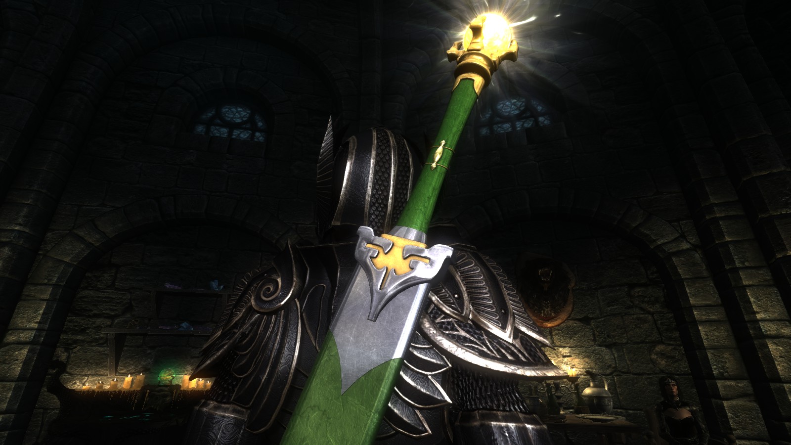 Мод добавляет новый клинок, наделенный силой солнца, которое позволяет ему косить нежить, как траву. Новый меч имеет двуручную и одноручную версию, характеристики чуть выше эбонитовых. Вы сможете улучшить его при помощи серебряного и золотого слитка. Также клинок может сбить врага с ног солнечной волной. Найти его можно в храме Ауриэля, рядом с ледяным великаном, попасть к которому можно поставив кувшин посвященного в нужное место.