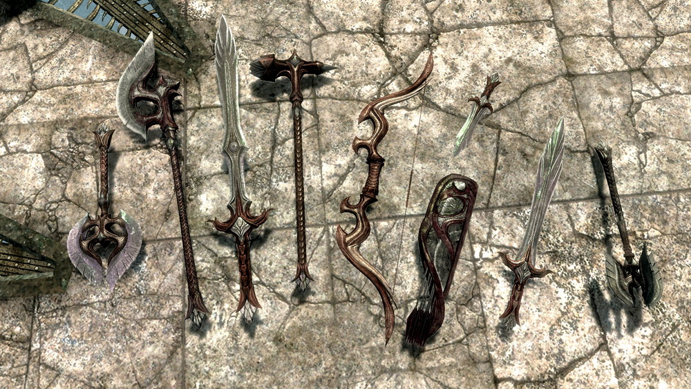 * У них есть уникальная броня и архитектура, но не оружие? Я думаю, что Bethesda по какой-то причине просто использовала обычное оружие Эльфов из за удобства, а не по какой то другой причине. Надеюсь, вы согласитесь со мной, что Древнему Фалмеру требуется собственное оружие.