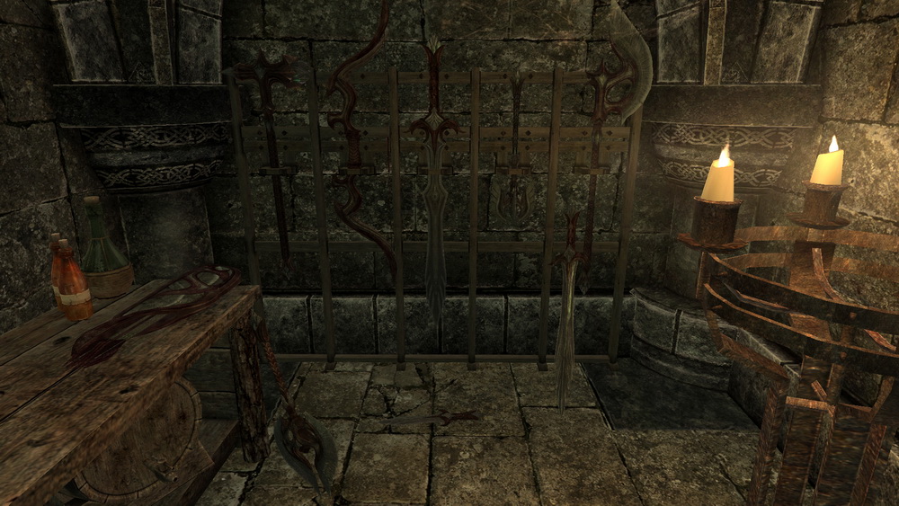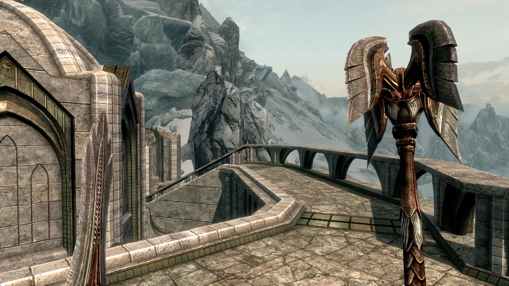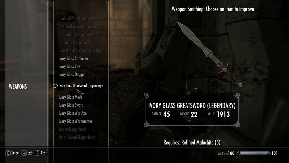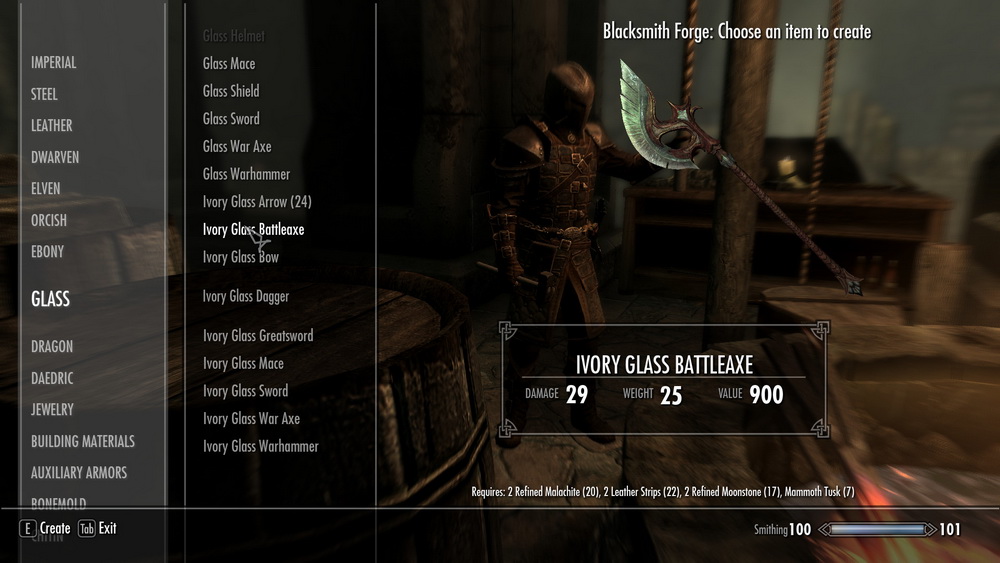 * Автор то же очень любит стеклянное оружие, которое являются эльфийским по происхождению, поэтому он подумал: "Эй, может они вылили стекло из слоновой кости, из бивней местных существ Скайрима".