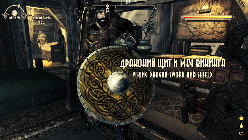 * Мод добавляет Драконий щит и меч викинга в Skyrim.