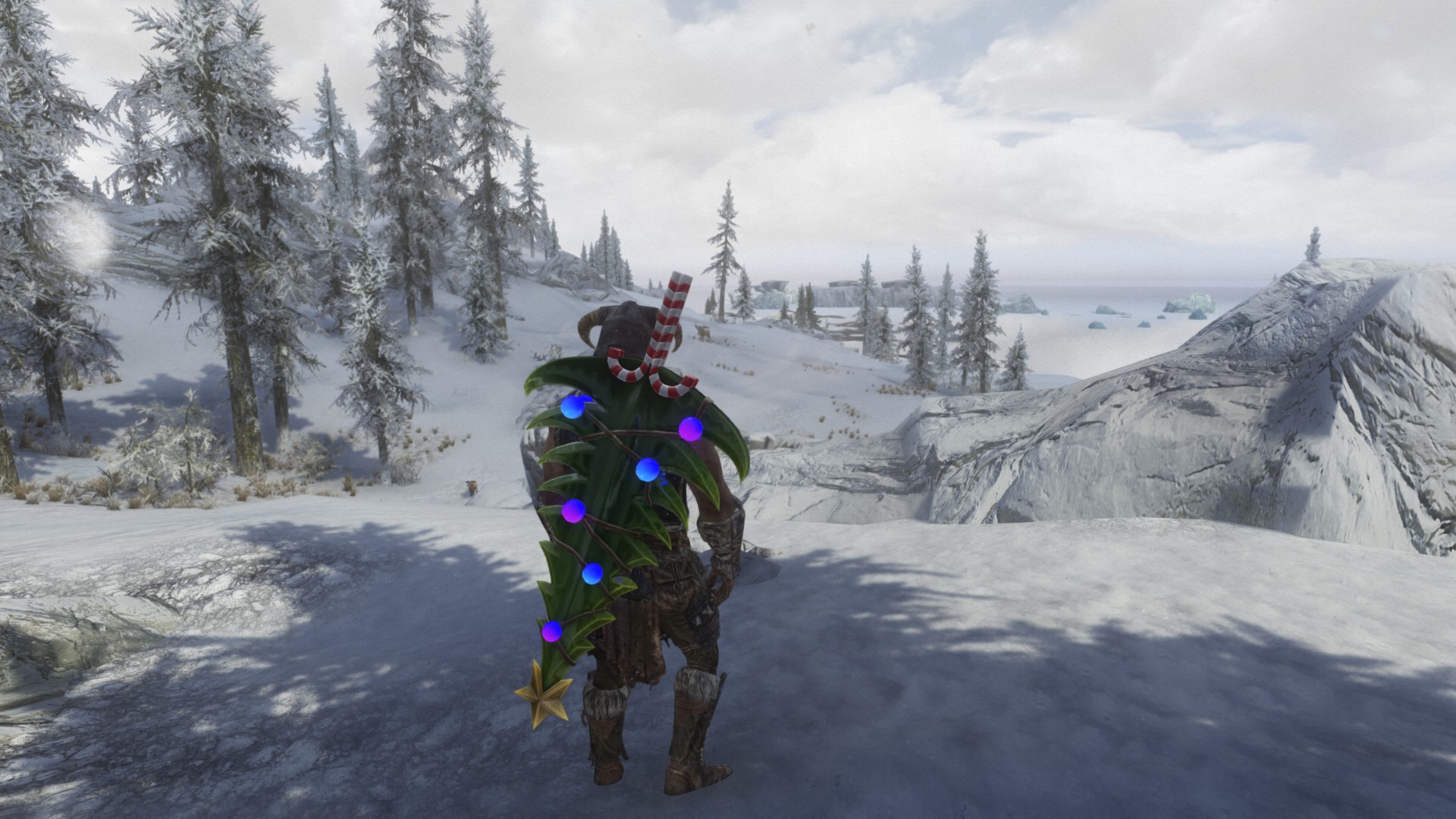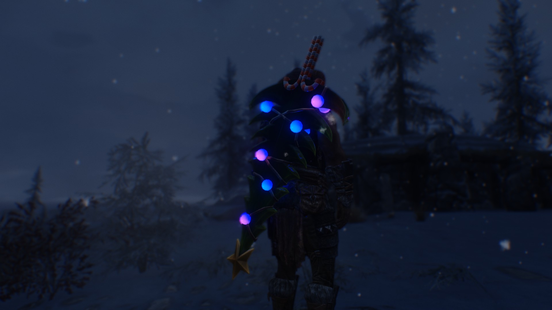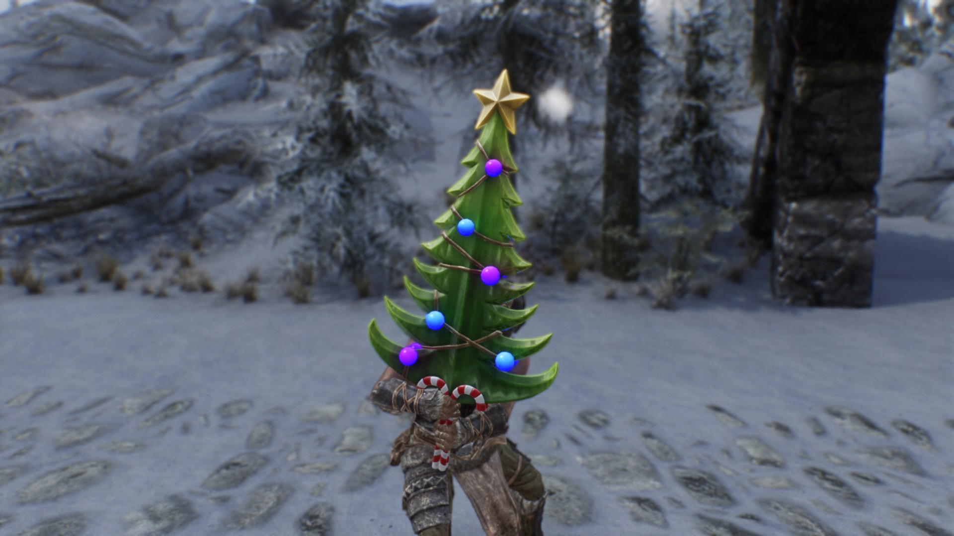 Двуручный меч в виде нарядной ёлочки, добавляемый этим модом, вы сможете найти в Длинном доме ярла в Винтерхолде.