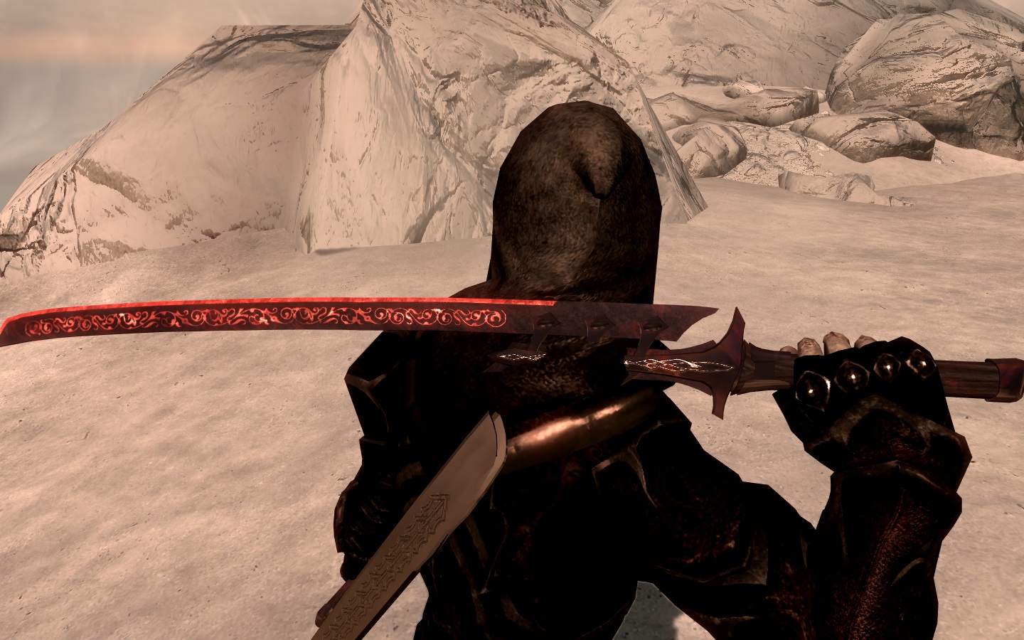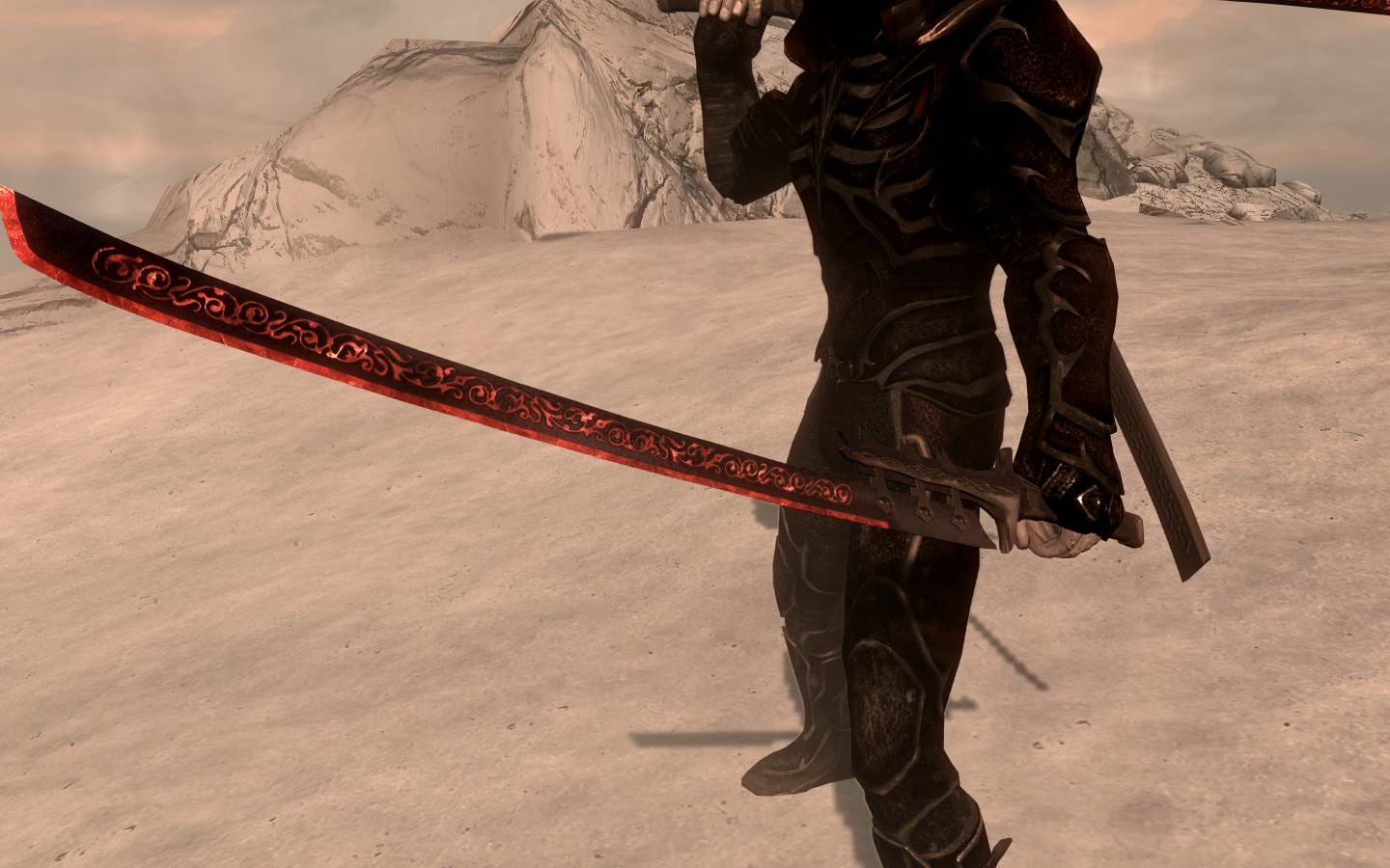Представляю вам новый меч под названием "клинок кровавой луны". Клинок создаётся из эбонита с добавлением рубина, скрафтить вы его можете в разделе "эбонитовое", при наличии перка "кузнец-волшебник" и "эбонитовое". Меч улучшается и имеет постоянное зачарование на высасывание здоровья.