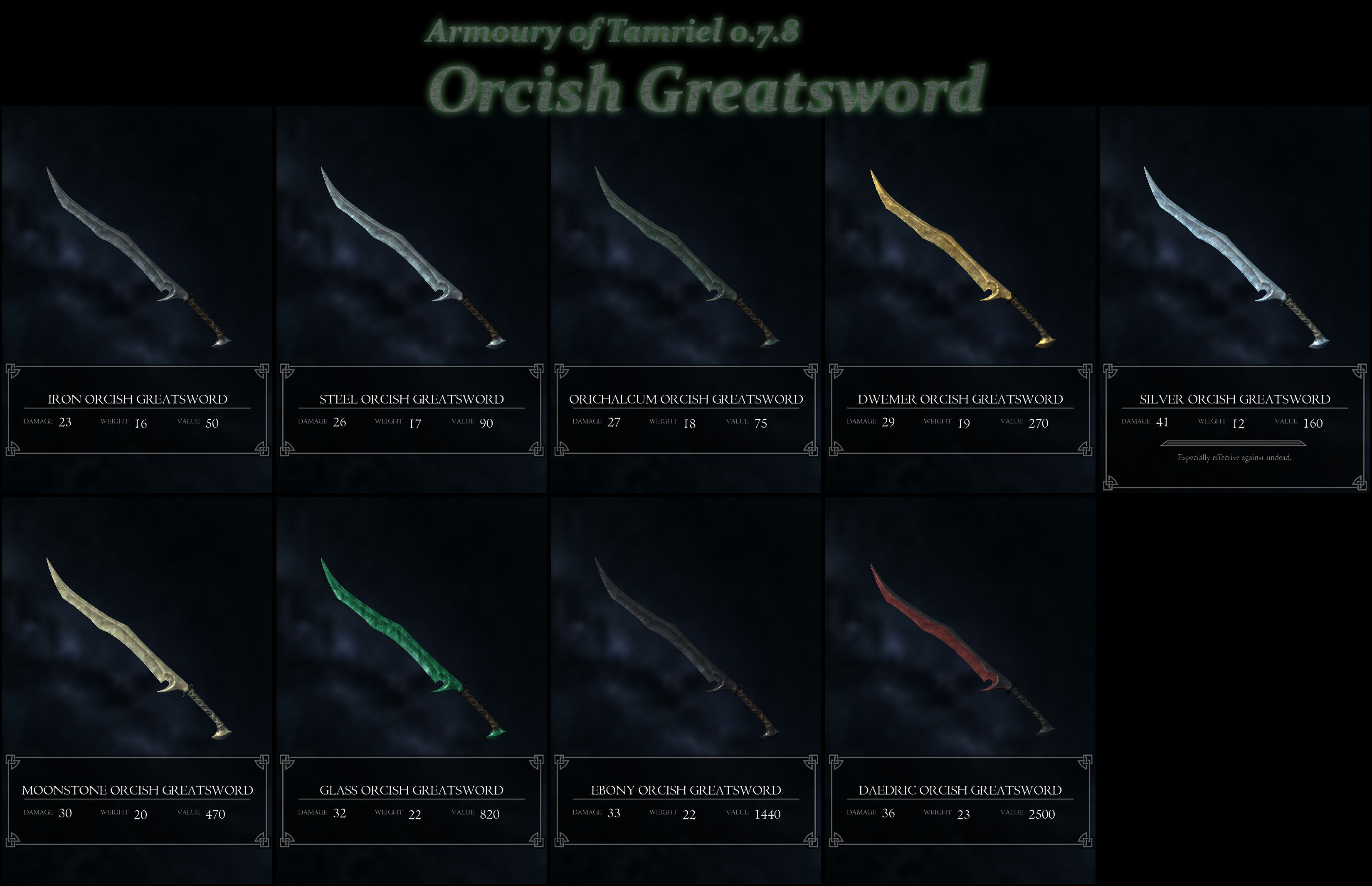 - Материал оружия и его стилистика теперь не одно и то же. Не все орочьи мечи сделаны из орихалка и не все орихалковые меч сделаны в орочьем стиле!