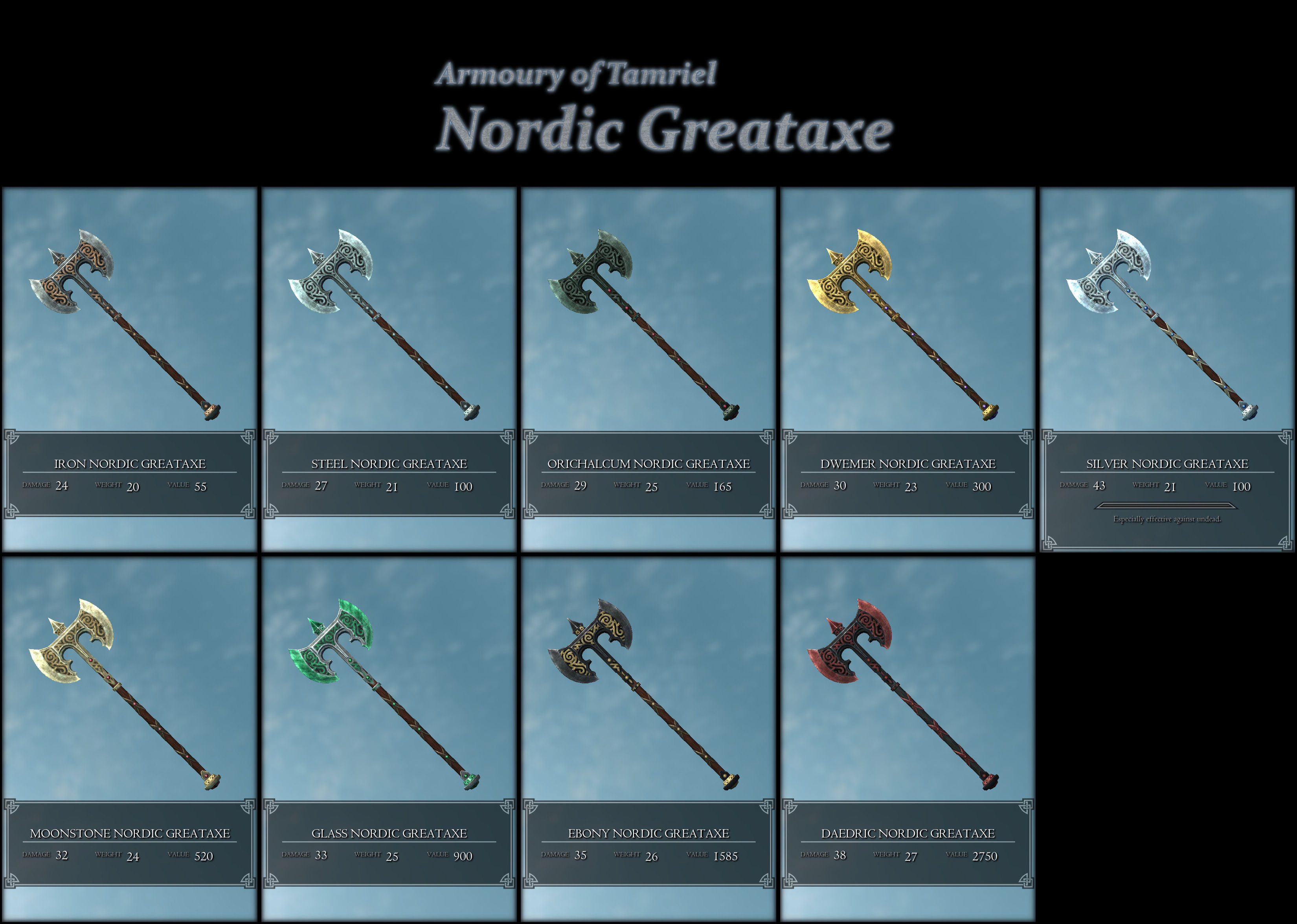 Данный мод является полной переработкой ковки оружия. Он добавляет множество оружия в кузницу и в уровневые списки.