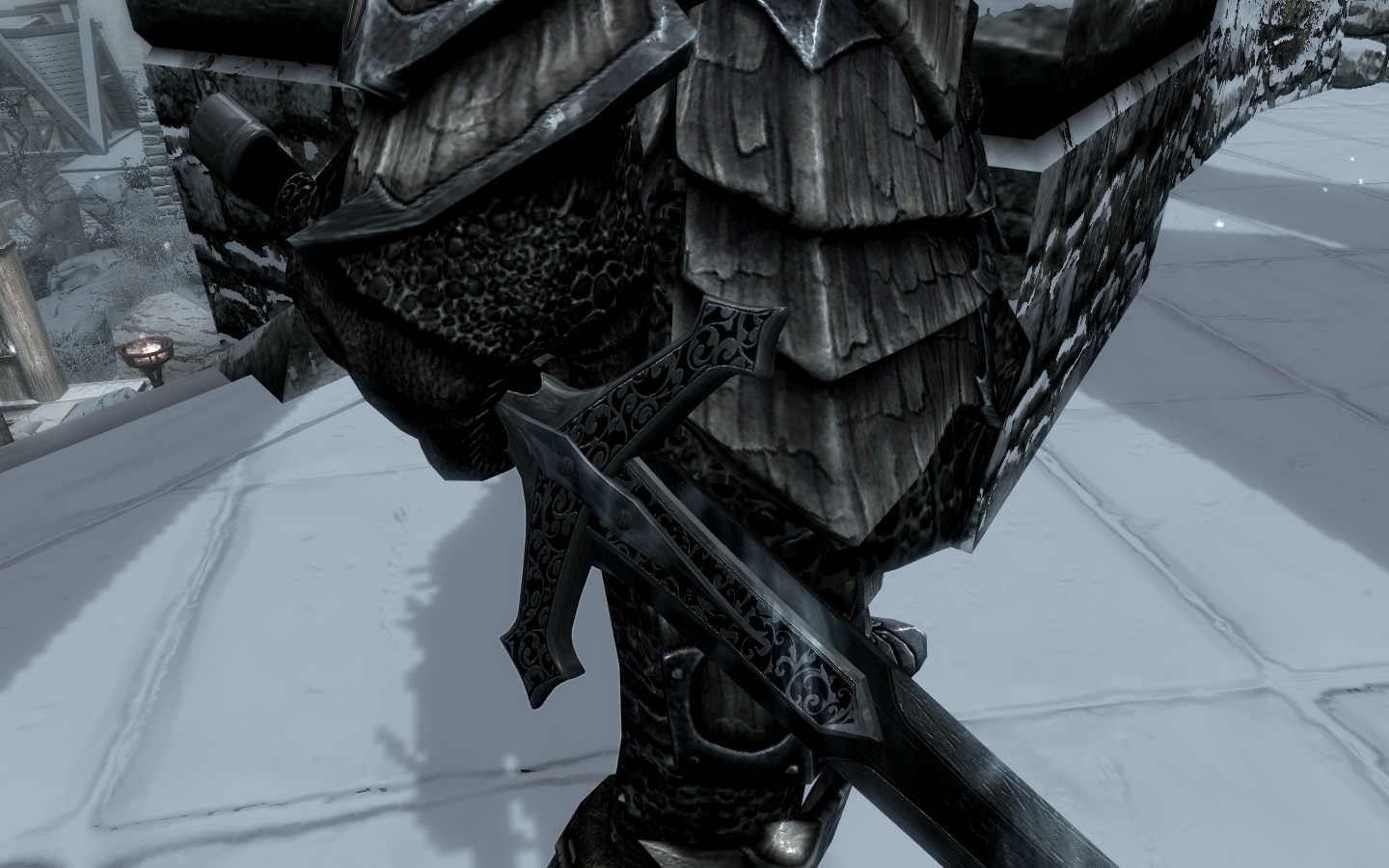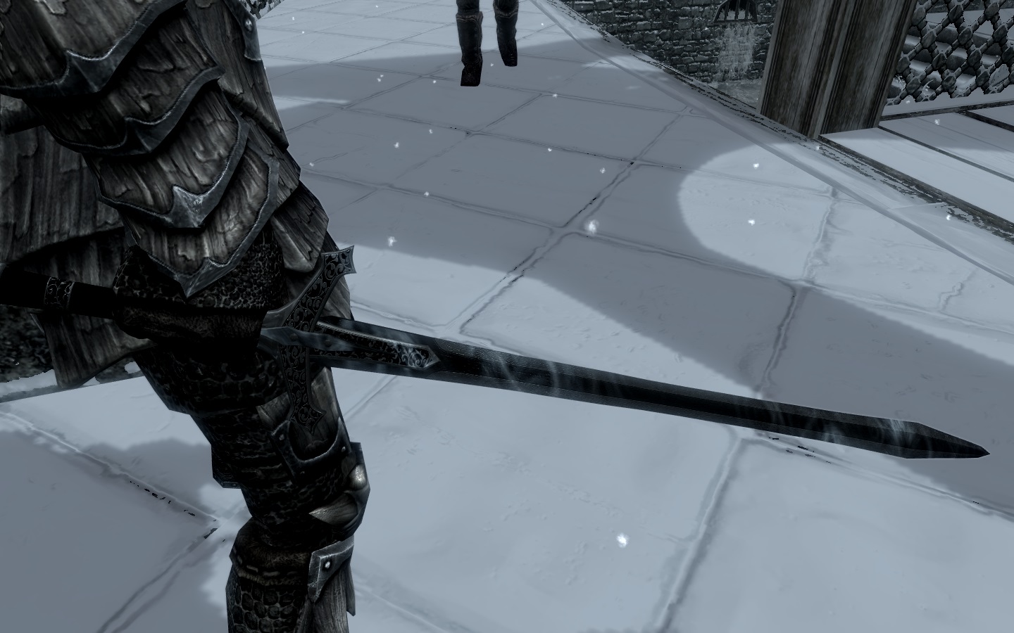 И вот я наконец доделал свой новый меч, сначала я даже и не догадывался, что делаю именно клеймор, но затем я случайно увидел этот вид мечей и всё встало на свои места. Итак, данный клеймор относится к стальному оружию, скрафтить его нельзя, а найти можно в храме небесной гавани рядом со стеной алдуина. Клеймор имеет зачарование, которое наносит дополнительный урон огнём и холодом. Так же его можно улучшить на точильном камне, для этого потребуется 2 стальных слитка, огненная соль и морозная соль.
