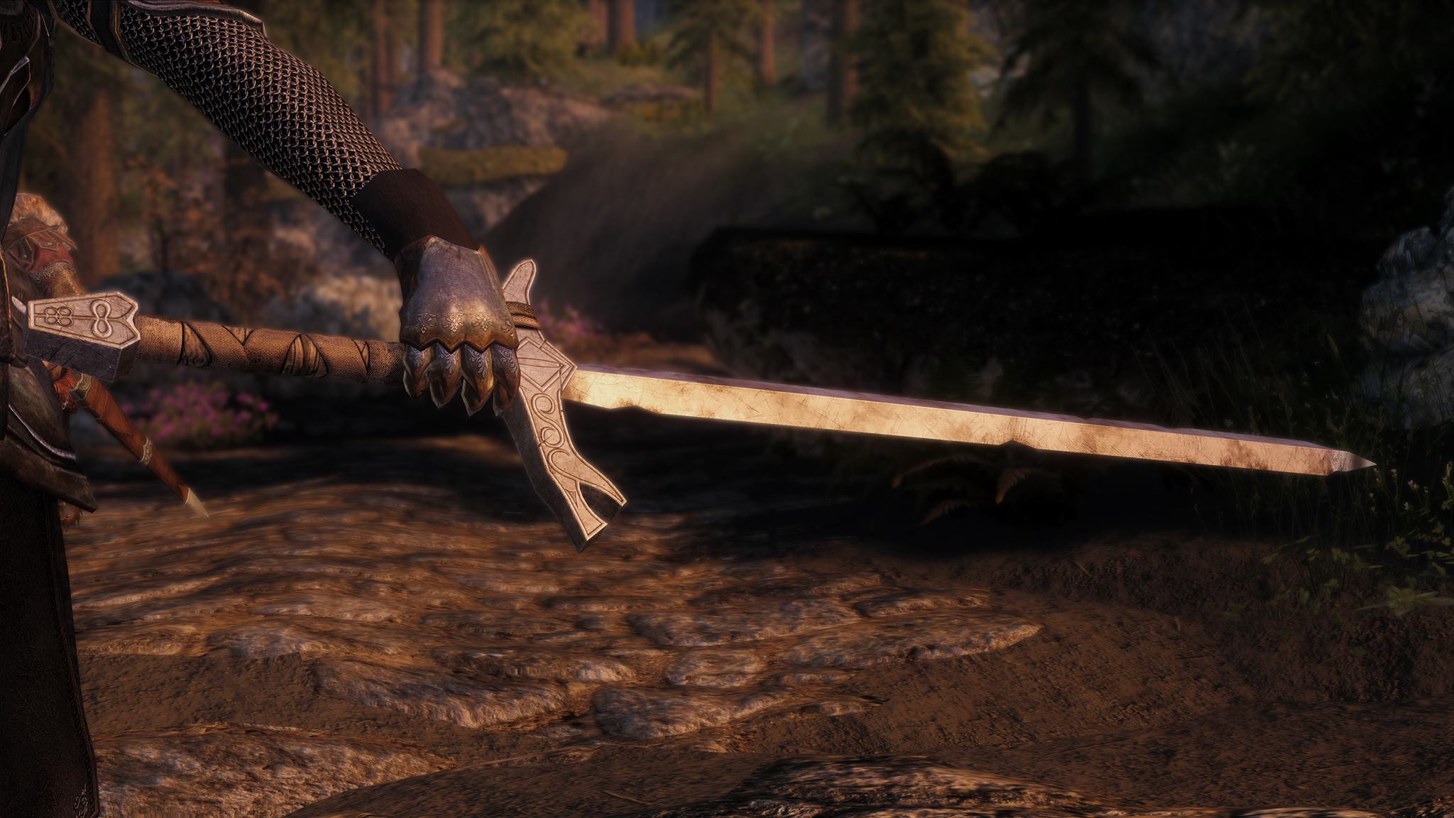 " Давным-давно, когда драконы правили Скайримом, существовал Драконий Культ - люди не знавшие пощады и поклонявшиеся драконам как богам. Были среди членов культа воины, которые особенно выделялись своей жестокостью и силой, да так, что сами Драконьи жрецы их благословляли. А чтобы ещё ярче выделить этих воинов среди прочих, для них ковались особые мечи, с изображением глаза дракона на рукояти, символизируя то, что их хозяева и боги смотрят на них, даруя силу.