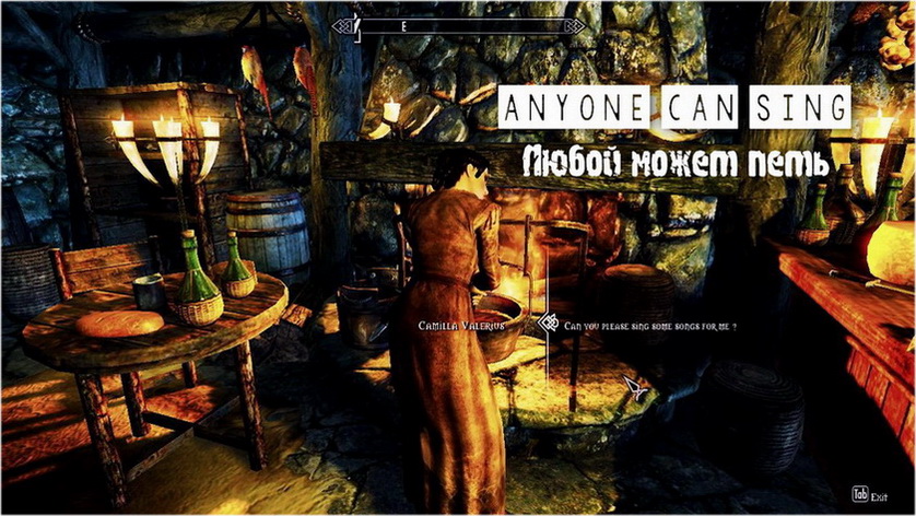 * Мод позволяет любому НПС - (Добавляет диалог), (при наличии соответствующего типа голоса: Female Eventoned, Female Youngeager, MaleNord, Male Youngeager) спеть песню для вас где угодно в Скайриме.