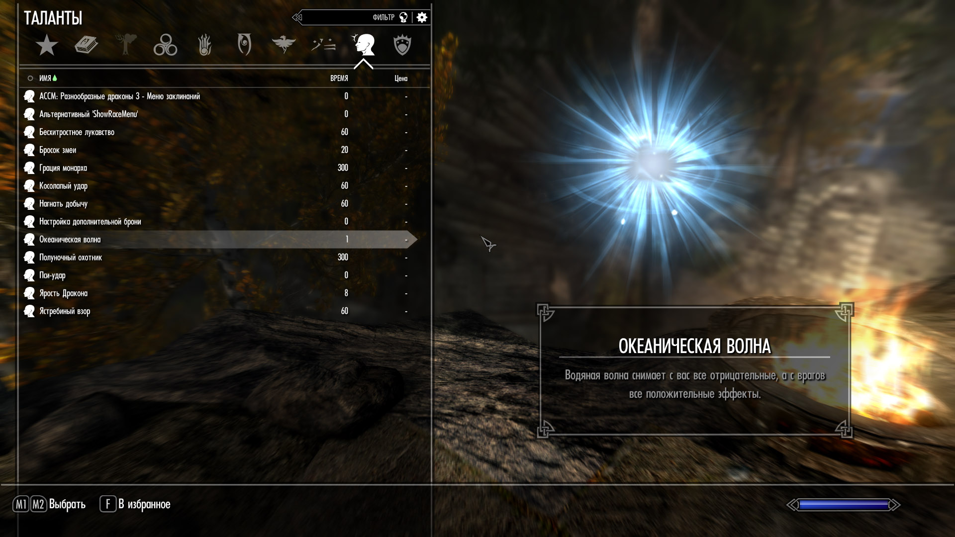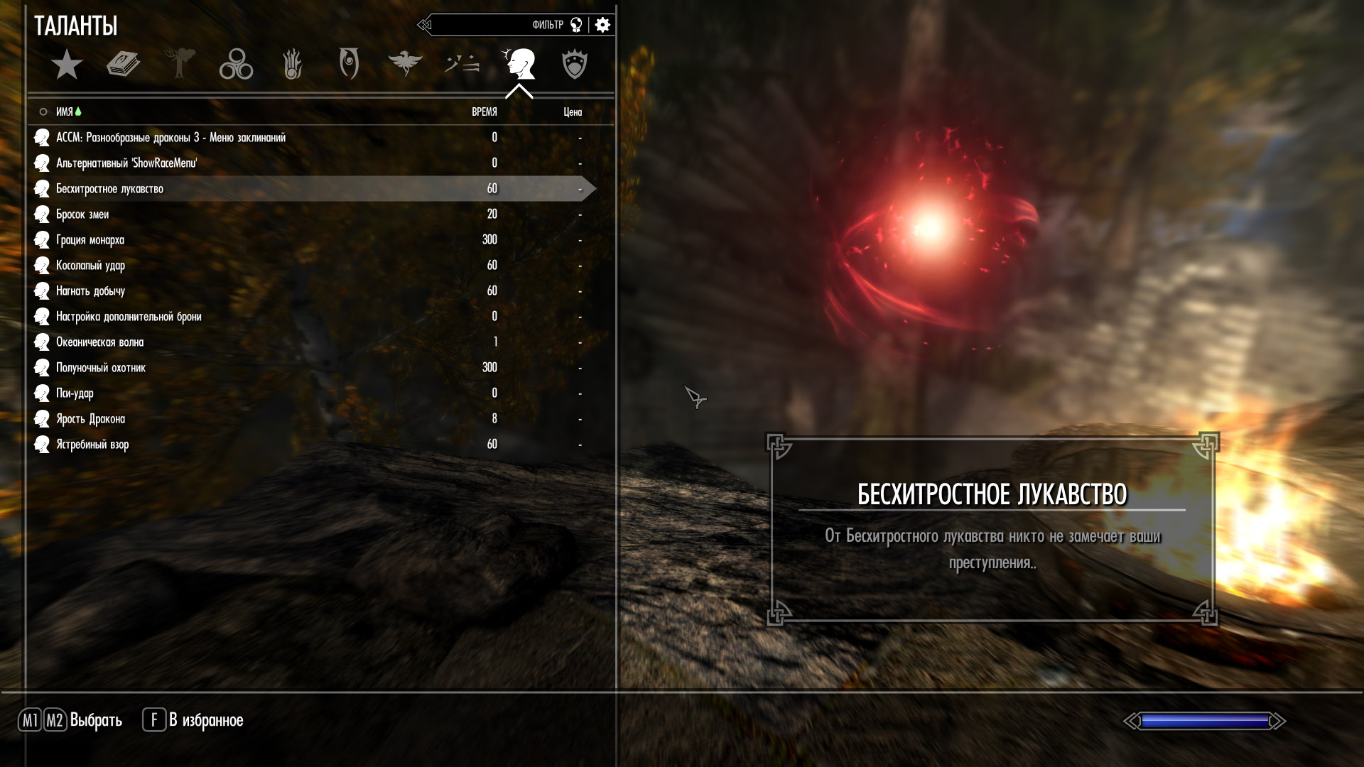Так же, если вы играете с моим Истинно-фэнтезийным Скайримом и поставите патч для него, то талисман Кладоискателя будет увеличивать шанс найти уникальные реликвии довакина из последнего таланта во Взломе Замков.