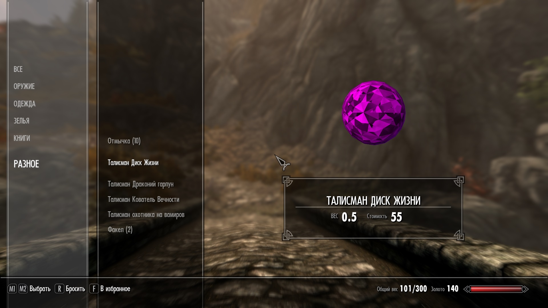 Два примечания: 1) Все талисманы имеют вес (от 0.5 до 2). Так что, чем больше вы их таскаете, тем меньше свободного места у вас останется. 2) Из-за того, что в предметах типа «Разное» нельзя вписывать описания, пришлось создавать магические эффекты. Так что, чем больше у вас талисманов, тем больше у вас будет активных магических эффектов. Теперь чуть подробнее о нескольких талисманах.