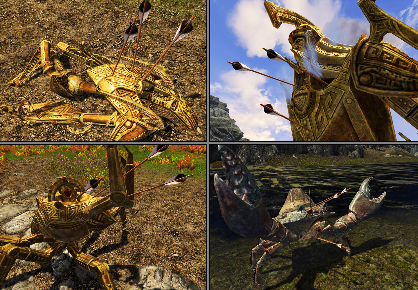 В-третьих – разве не странно, что центуриона (грязекраба тем более) можно остановить, тарабаня стрелами по корпусу? Так хоть можно считать, что стрела застряла в механизме и этим повредила его.