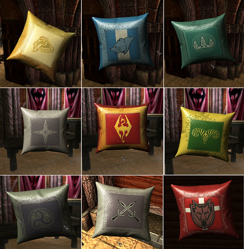 Просто подушки, исключительно для декоративной функции. Попадаются в некоторых сундуках по скайриму, можно купить во "Всякой Всячине" в Солитьюде, изготовить на дубильном станке за 1 полоску кожи.