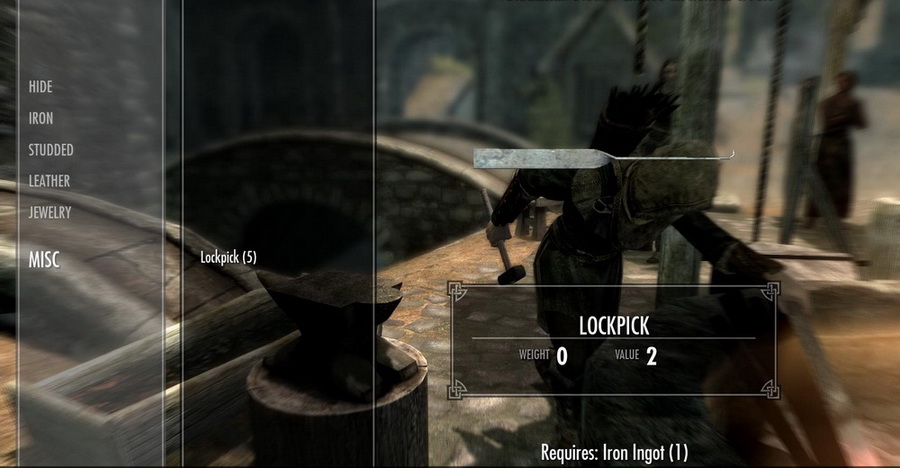 При помощи этого мода вы теперь сами сможете изготавливать отмычки в игре Skyrim, для этого вам потребуется железный слиток и верстак, находящийся в любой кузнице.