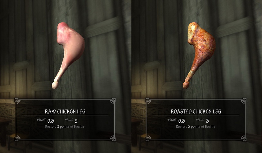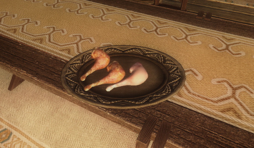 * Вы замечали что в игре Skyrim есть куры, но нет куриных ног, так вот, этот мод добавляет две сырые куриные ножки и две куриные грудки при луте убитой курицы.