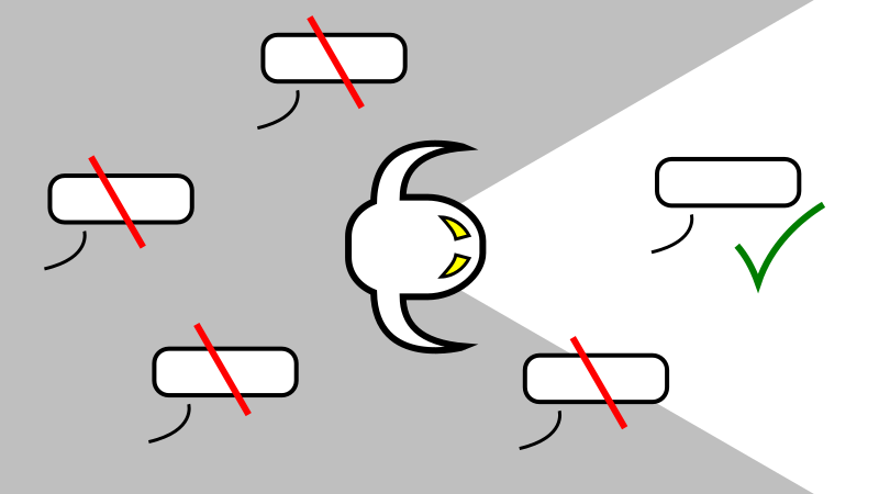 По сути, он изменяет область, попав в которую, NPC будут говорить, и ограничивает её под определённым углом, который представляет центральную часть от вашего поля зрения.
