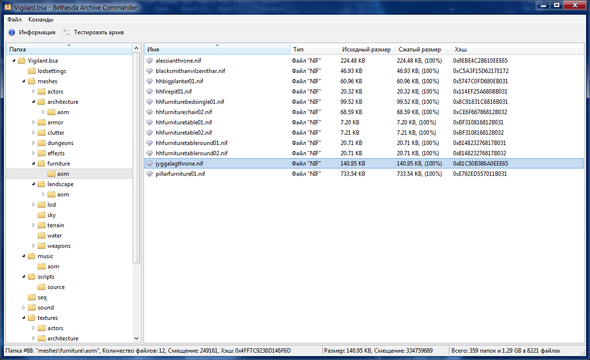 Bethesda Archive Commander - простая программа для просмотра и распаковки содержимого BSA архивов. Название придумано, как вы возможно догадываетесь, по образу