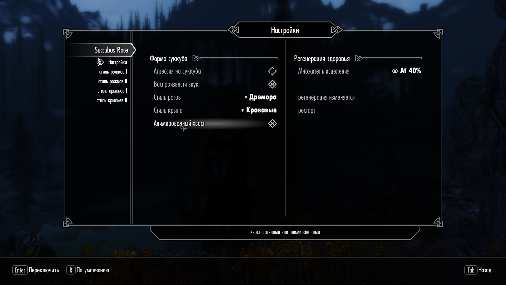 Модификация добавляет в Skyrim новую расу Суккубов для женских персонажей, а также броню и магию.