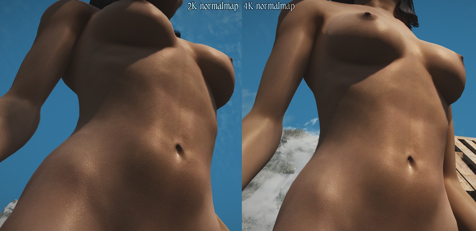 Убраны последствия сжатия и смягчена текстура там, где это было нужно. Поскольку это просто текстуры, работать они будут на любой версии Skyrim для любой версии Lady Body.