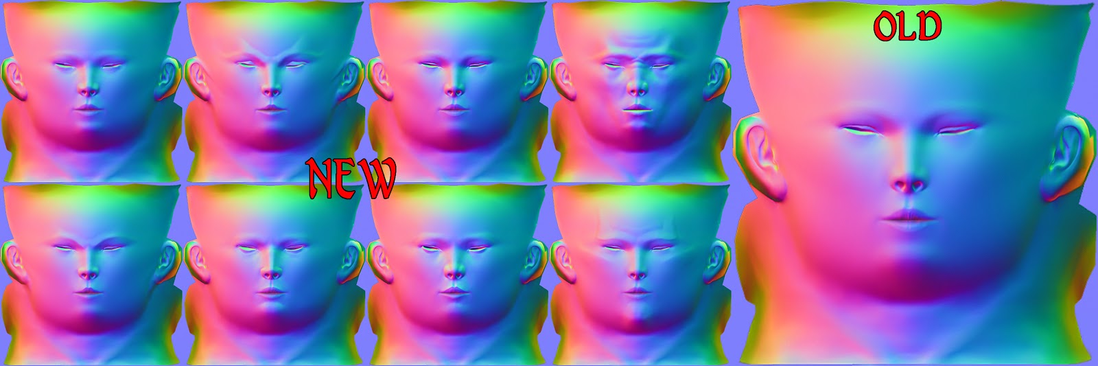 NRM_Old Face Normalmaps - карты нормалей лица, гладкие для всех рас. Без расовых отличий.