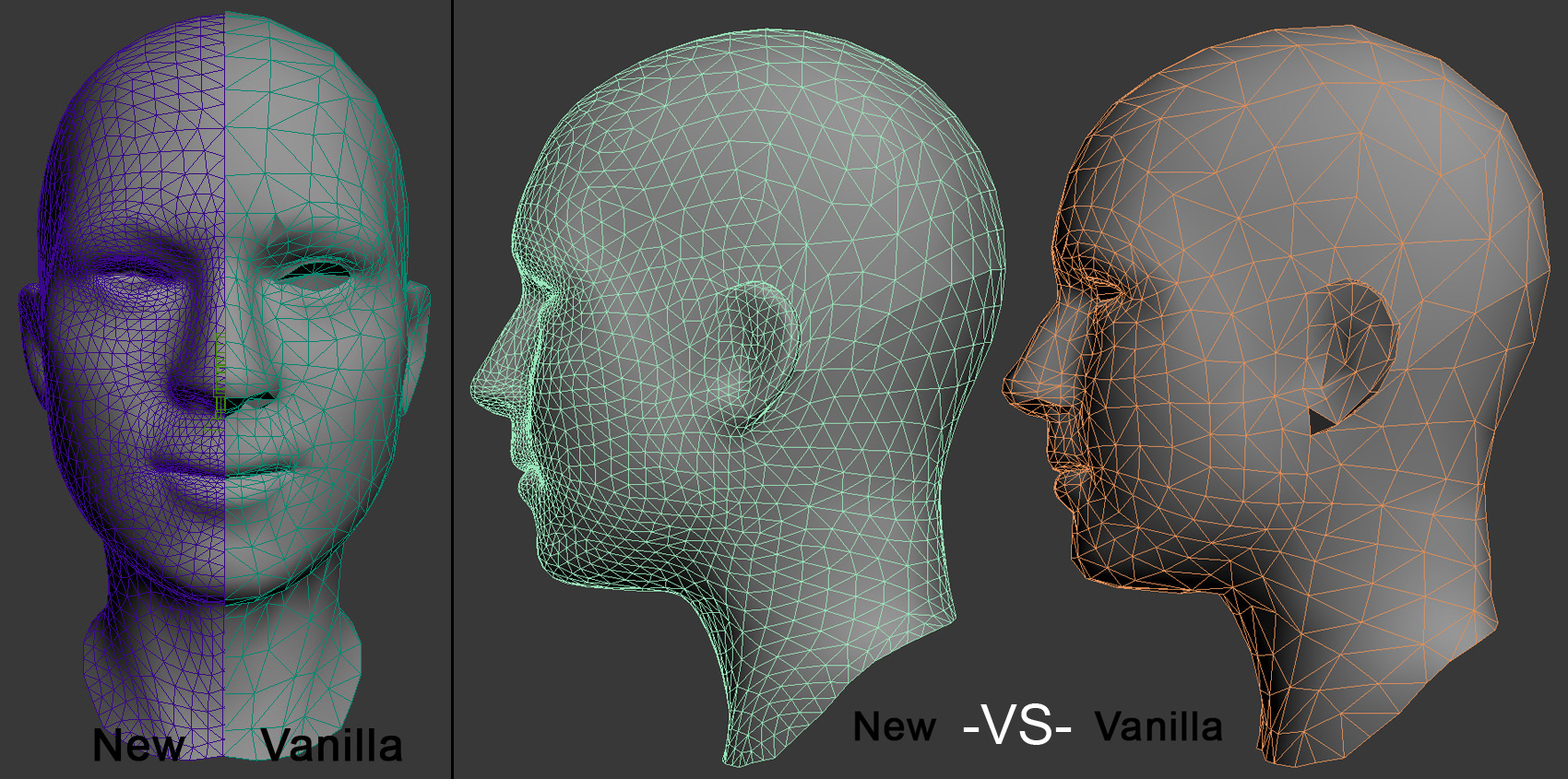 Новая голова позволила избежать ванильных багов виде "квадратного" подбородка, разных выступающих полигональных углов, "квадратного" носа, угловатых ушей, "треугольных" скул и прочего богатства которым ее наделили разработчики.