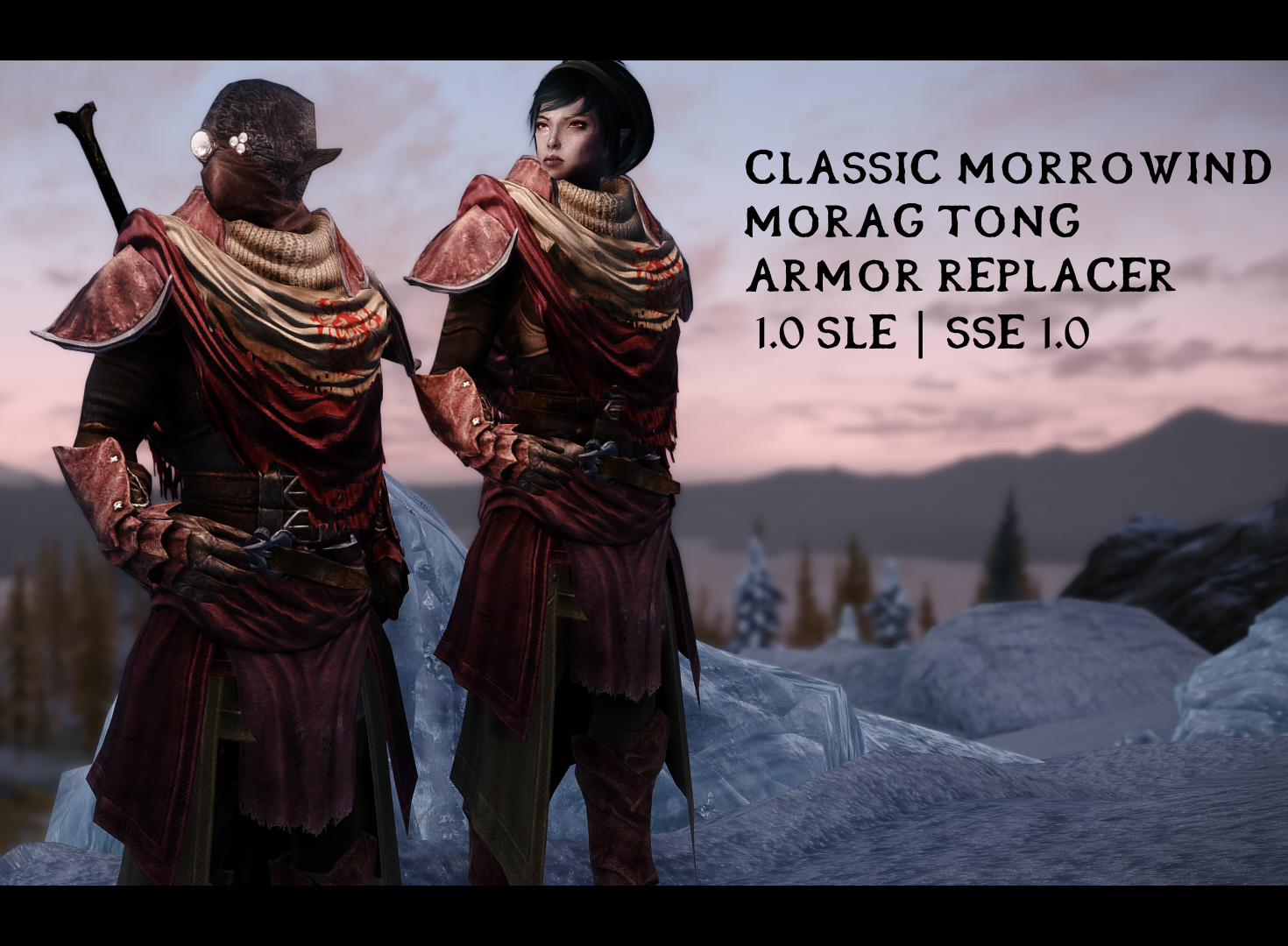 Данный мод изменяет внешний вид брони Мораг Тонг, гильдии, знакомой игрокам ещё со времён Морровинда. Вместо скучной и невзрачной тёмной брони, представленной разработчиками в Dragonborn, вы получите обмундирование, выполненное в духе как брони из TES III, так и в духе концепт-артов Киркбрайда.