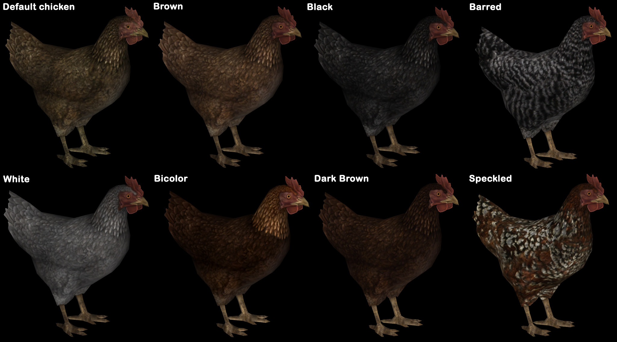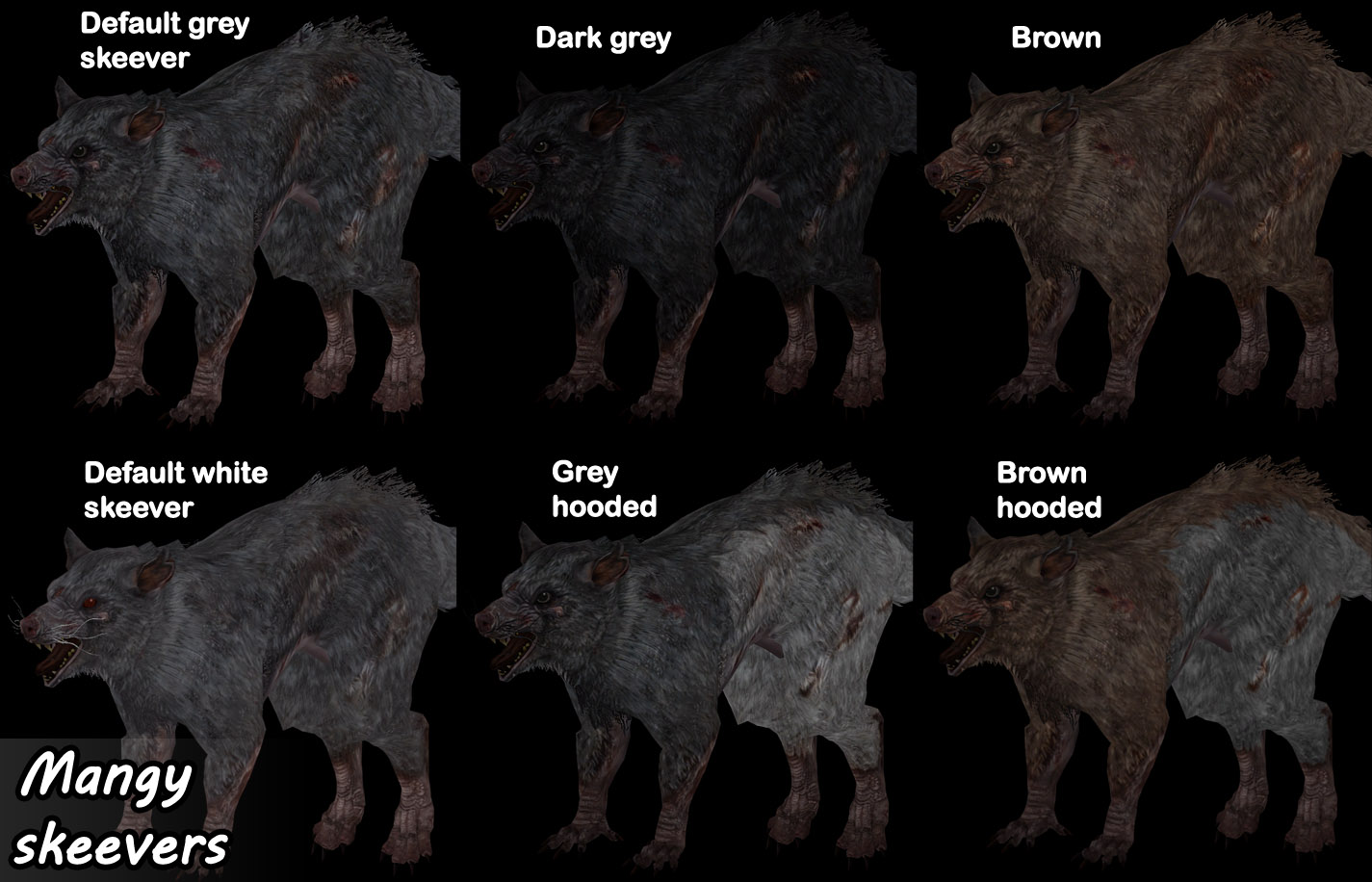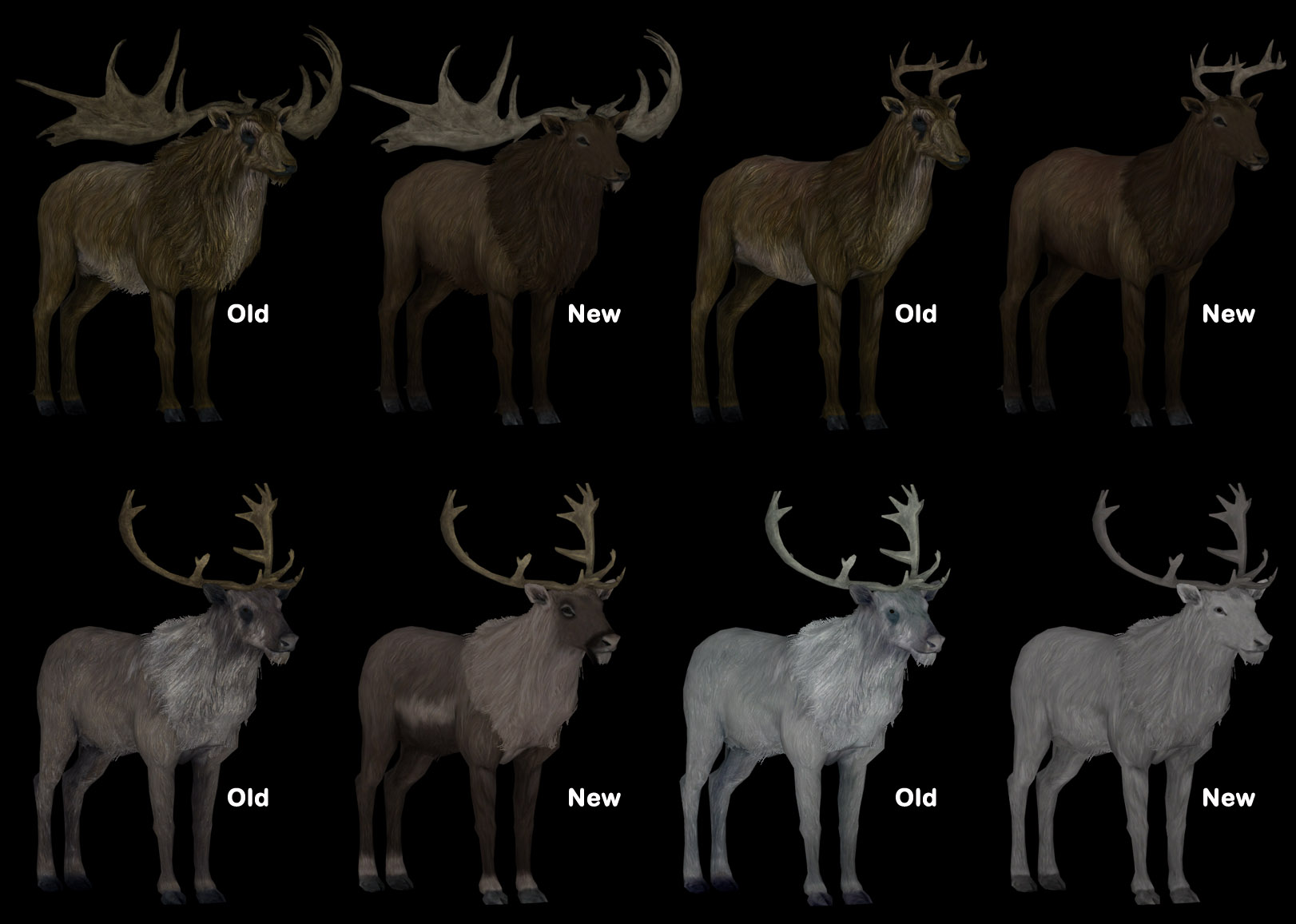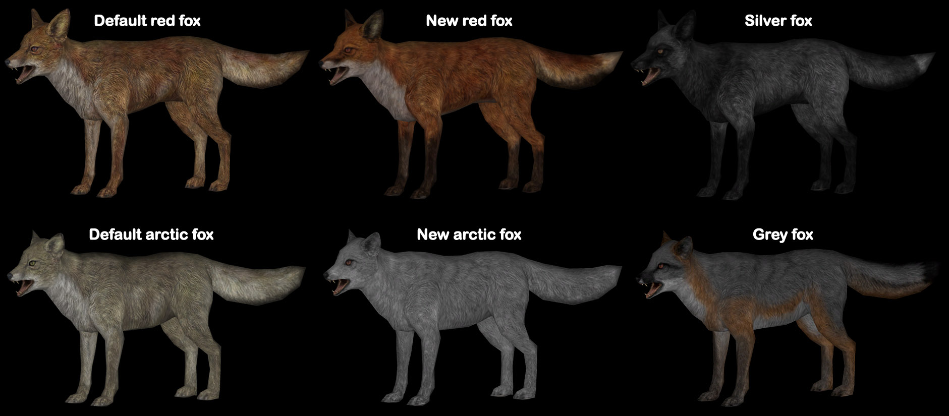В сборник включены текстуры волков, корусов, мамонтов, лошадей, оленей, собак, хоркеров, саблезубов, стрекоз, злокрысов, оборотней, грязекрабов, козлов, куриц, медведей, кроликов, коров, пауков, лисиц, ястребов.