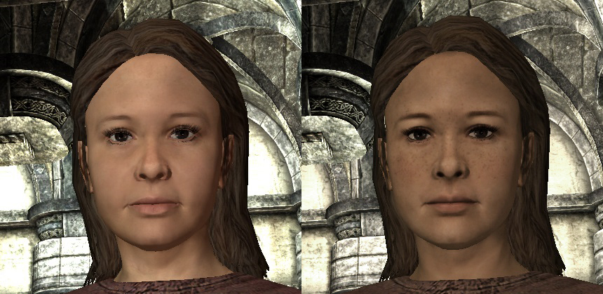 Лор-френдли, размер текстур 1к, только для ванильных голов. Применяется ко всем детям скайрима и ребятам из сторонних модов, которые используют стандартные текстуры головы. Несовместим с любыми реплейсерами внешности детей.