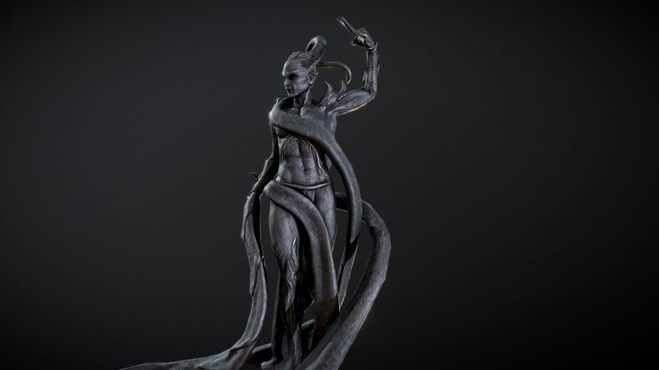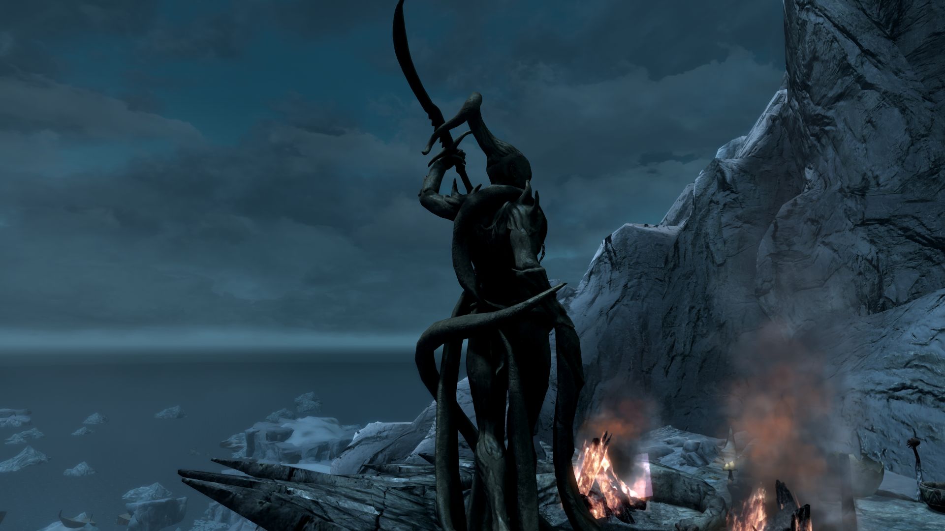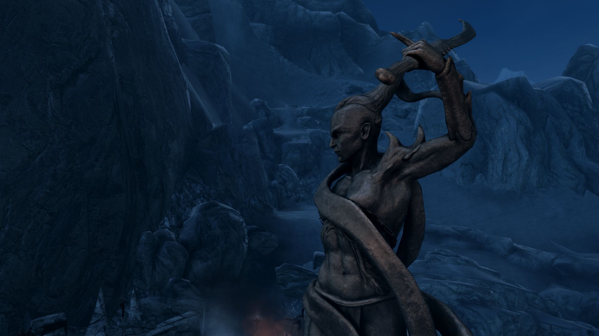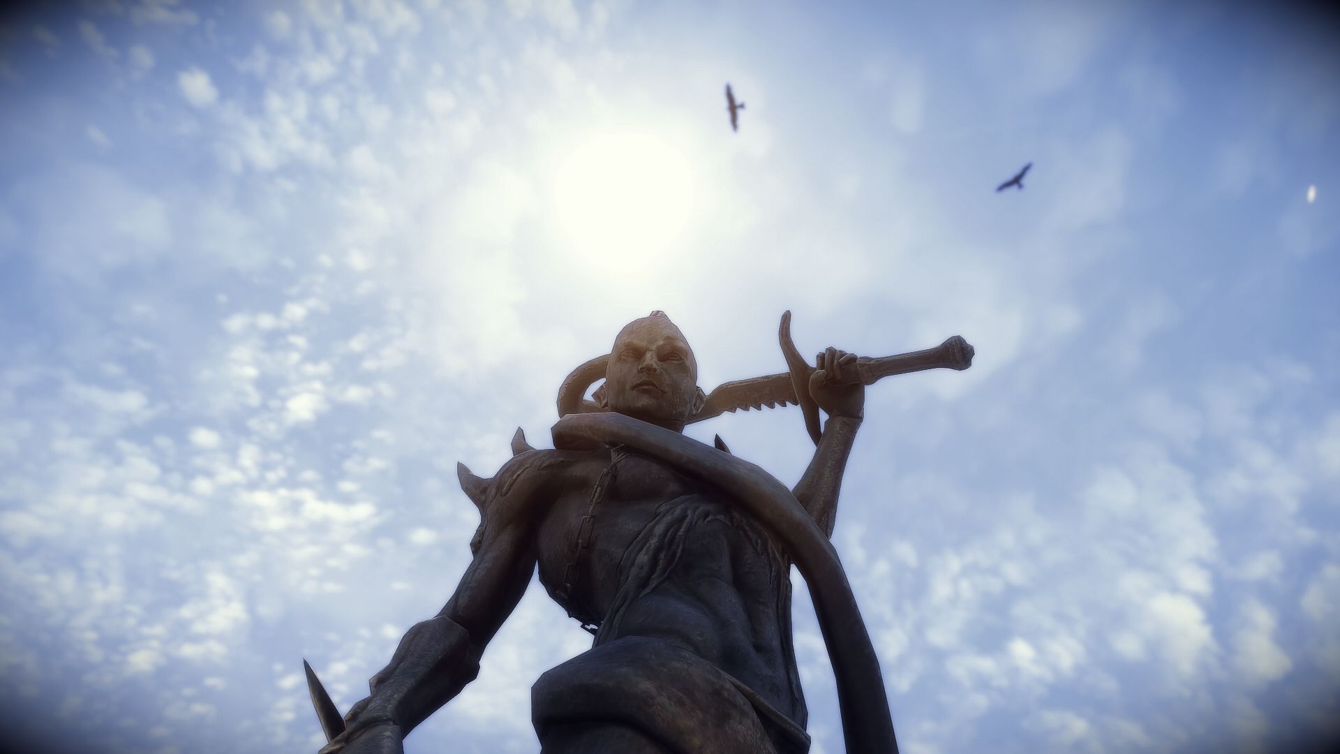 Это не похоже ни на Daggerfall, ни на Обливион. Щупалец там нет, одежда другая, обувь тоже другая, в том же Даггерфолле на лабутенах она была, прическа другая, меч другой и тп. Только то, что она выглядит как женоподобный мужик, не делает эту статую ориентированной на прошлые части)