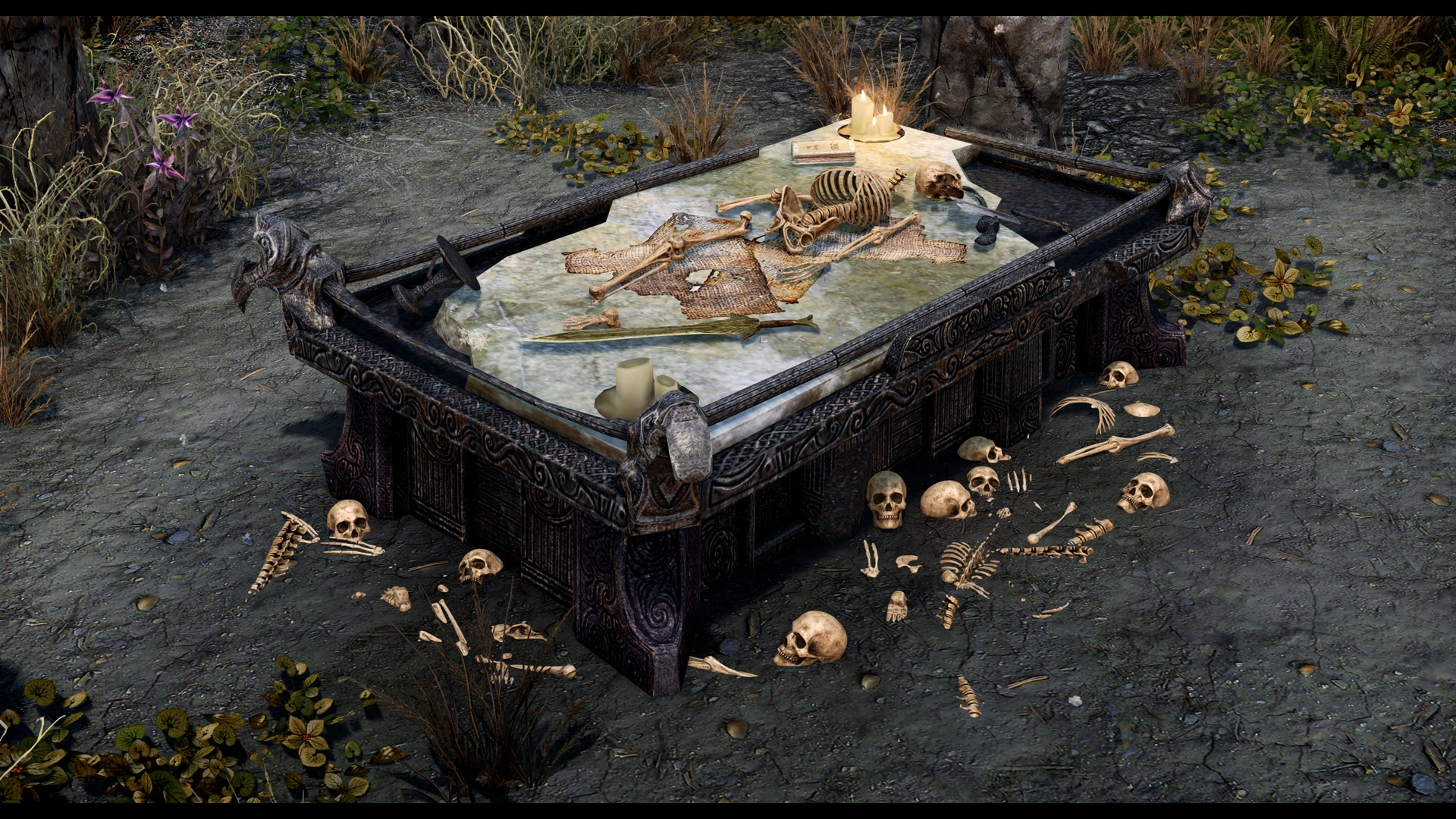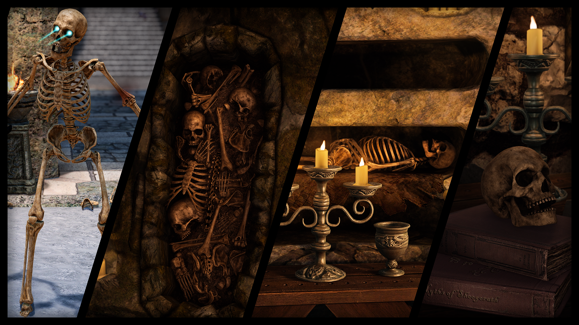 • Всех статичных скелетов. Это те, что лежат в нордских руинах, грудах костей внутри колонн и тому подобное.