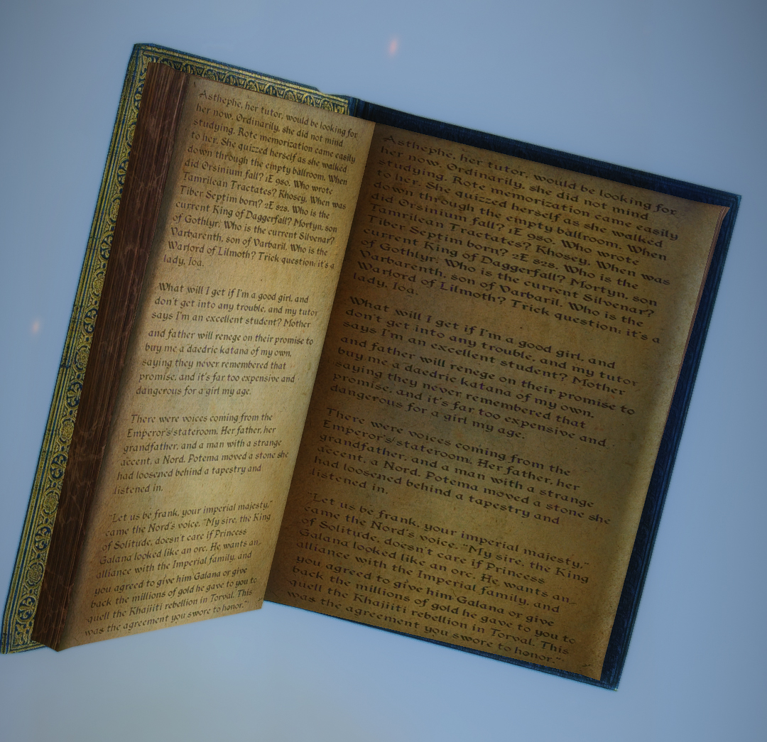 Неиспользованные book02ms06 и book02da01 имеют свои собственнные текстуры на случай если эти книги возвращены в игру модом. - В модовских домах которые используют статические модели ванильных книжек (например стопка книг сделанная из стандартных\ванильных моделей книг) будут смотреться криво. Это потому что что развёртки текстур у моделей разные, и предположить где и какой автор будет каким образом делать стопки книг в домах невозможно. В ванильной игре (насколько мне известно) такого не встречается.