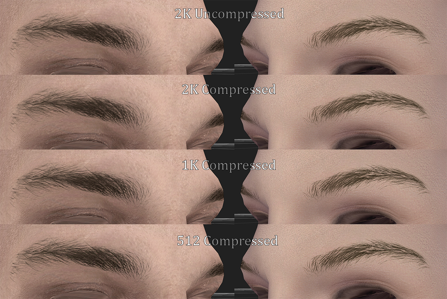 Для бровей я рекомендую сжатые 1024 (сжатые 1K) для большинства компьютеров. Для бород сжатые 2К.
