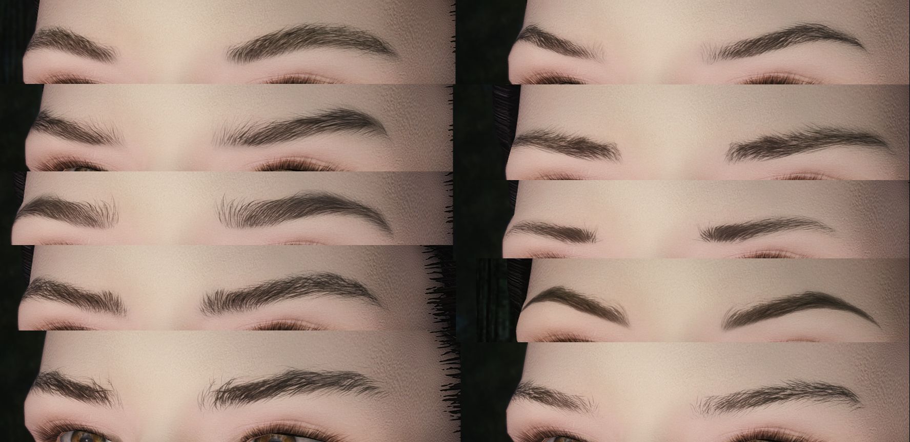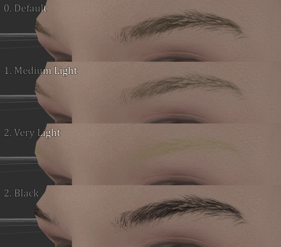 Можете смешать все эти цвета друг с другом как хочется (скажем, malebrow_1.dds пусть будут тёмные, malebrow_7.dds - медиум\светлые, а malebrow_9.dds очень светлые для вашего персонажа-альбиноса или типа того).
