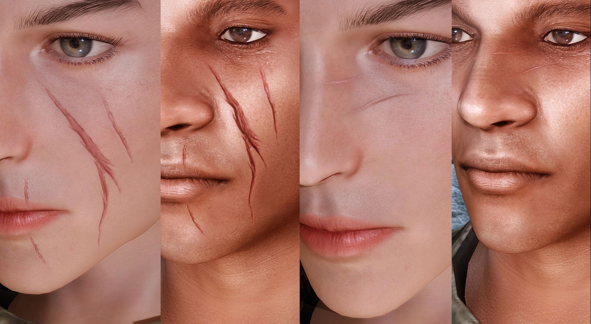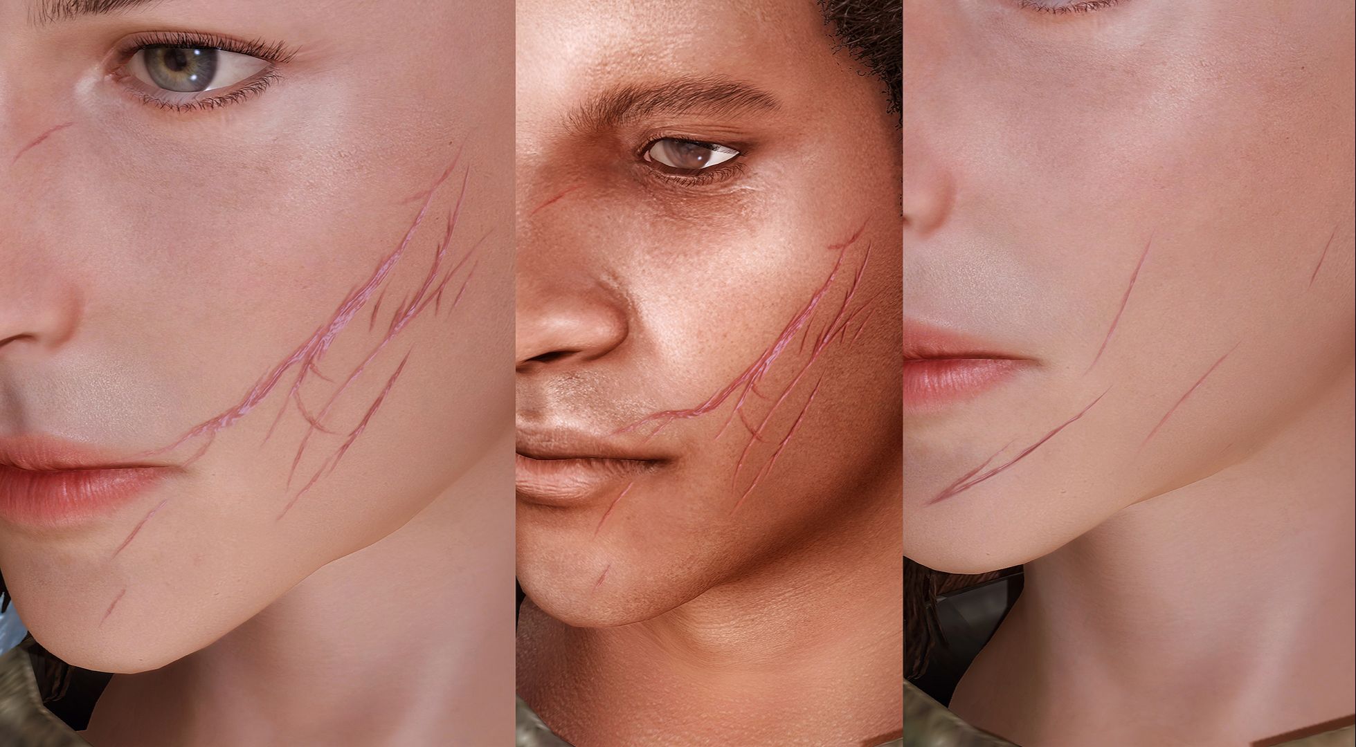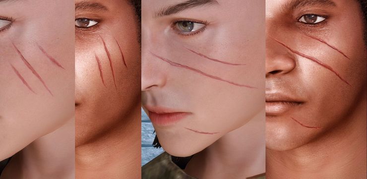 Опционально есть реплейсер 4х разных шрамов чтобы они выглядели "типа как" келоидные рубцы, а не как заживающие раны (как по умолчанию)