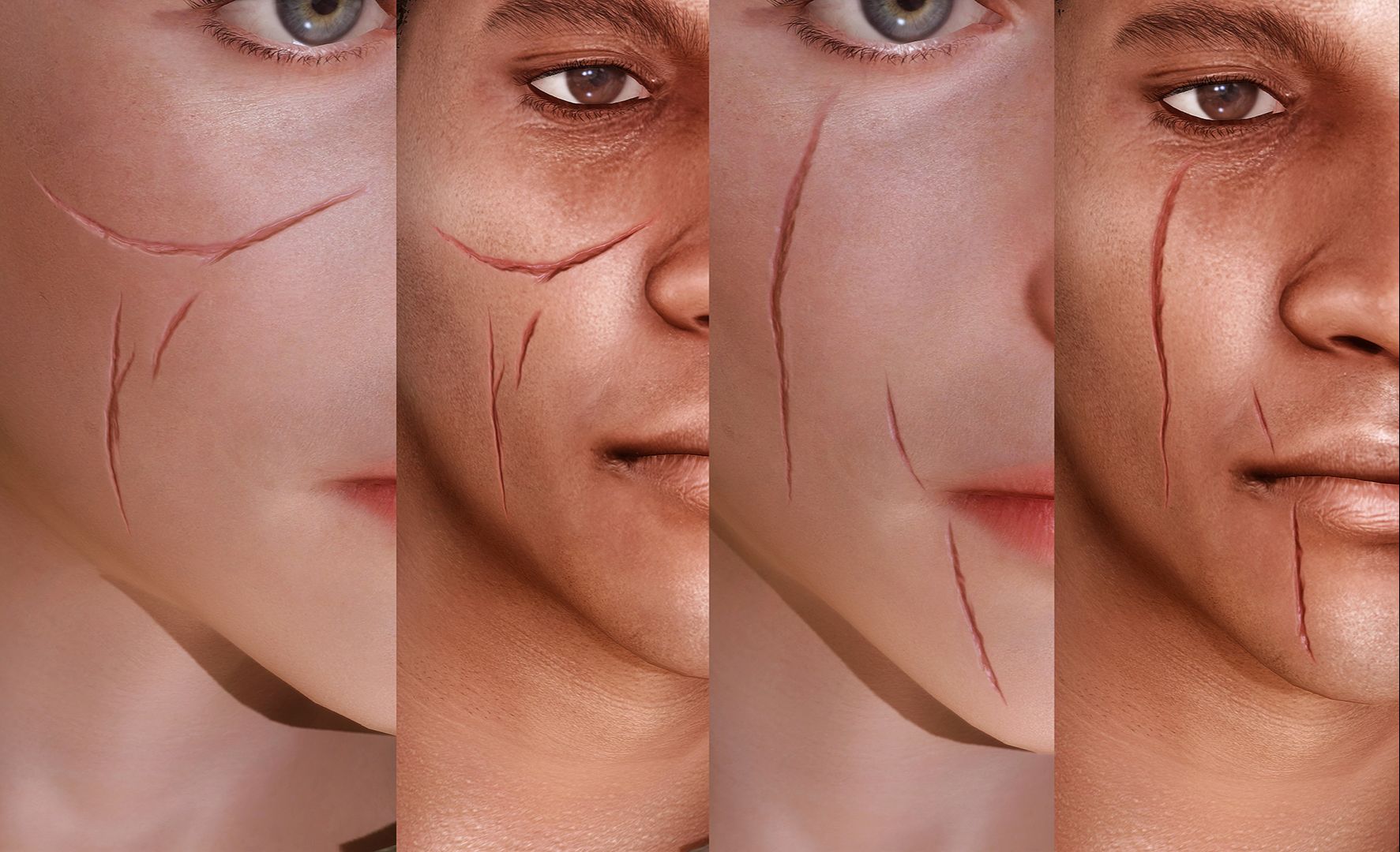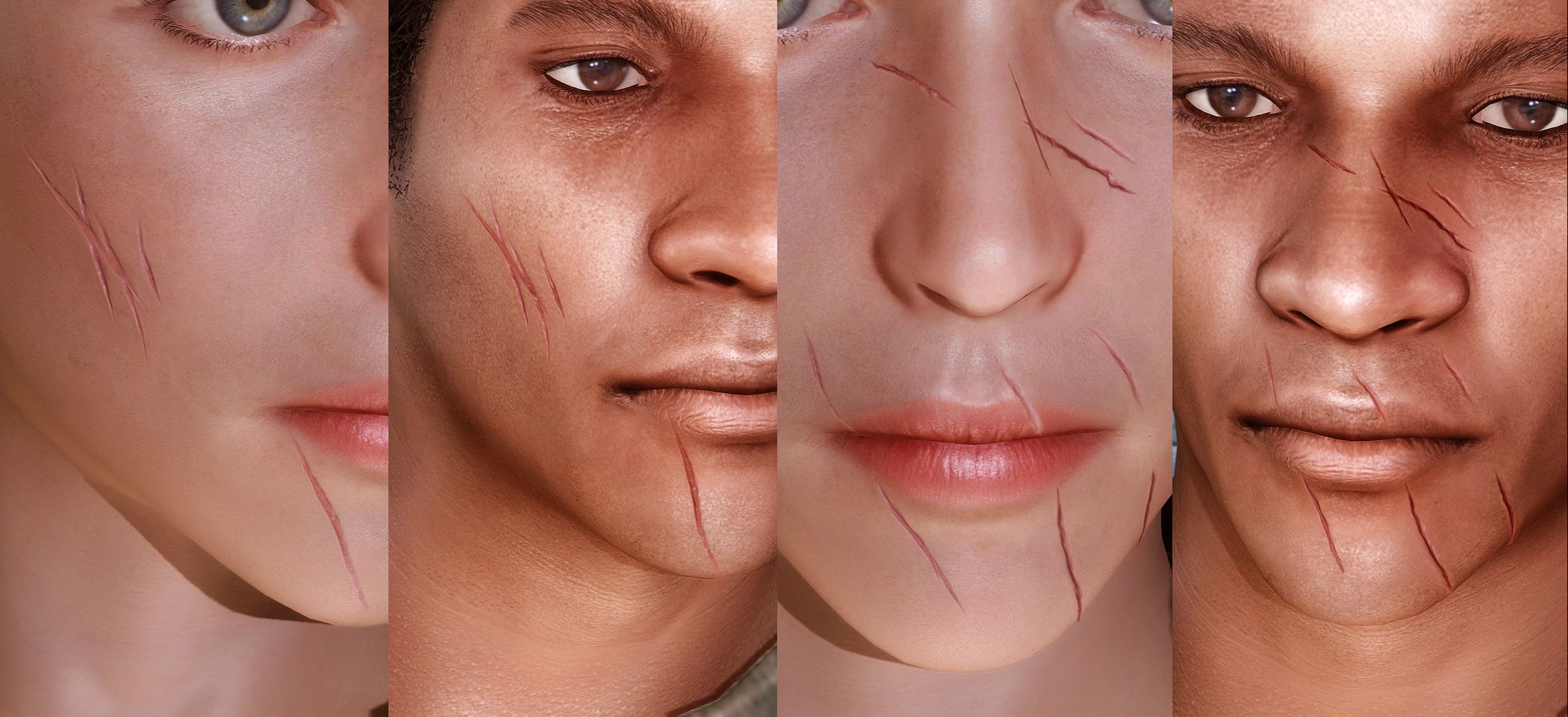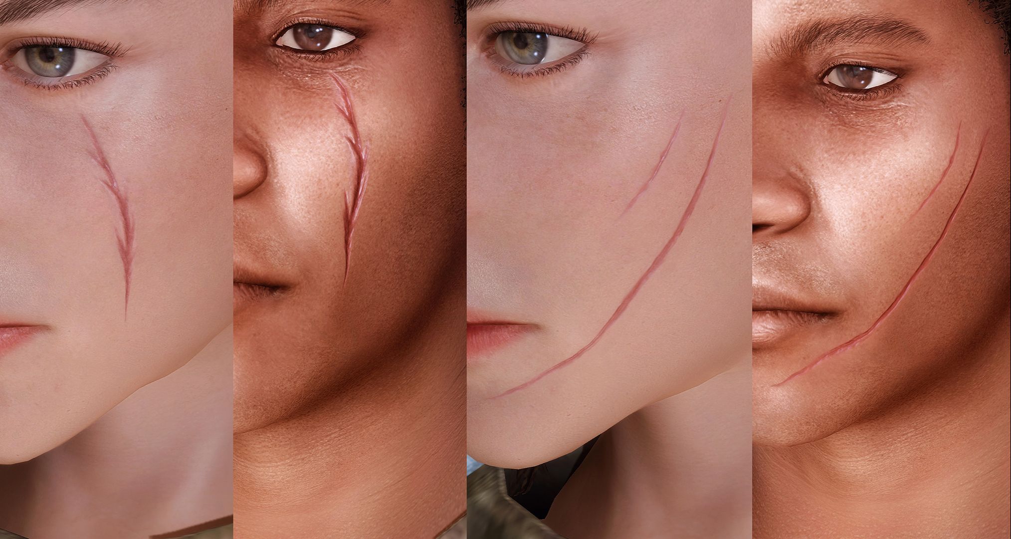 Опционально есть реплейсер 4х разных шрамов чтобы они выглядели "типа как" келоидные рубцы, а не как заживающие раны (как по умолчанию)