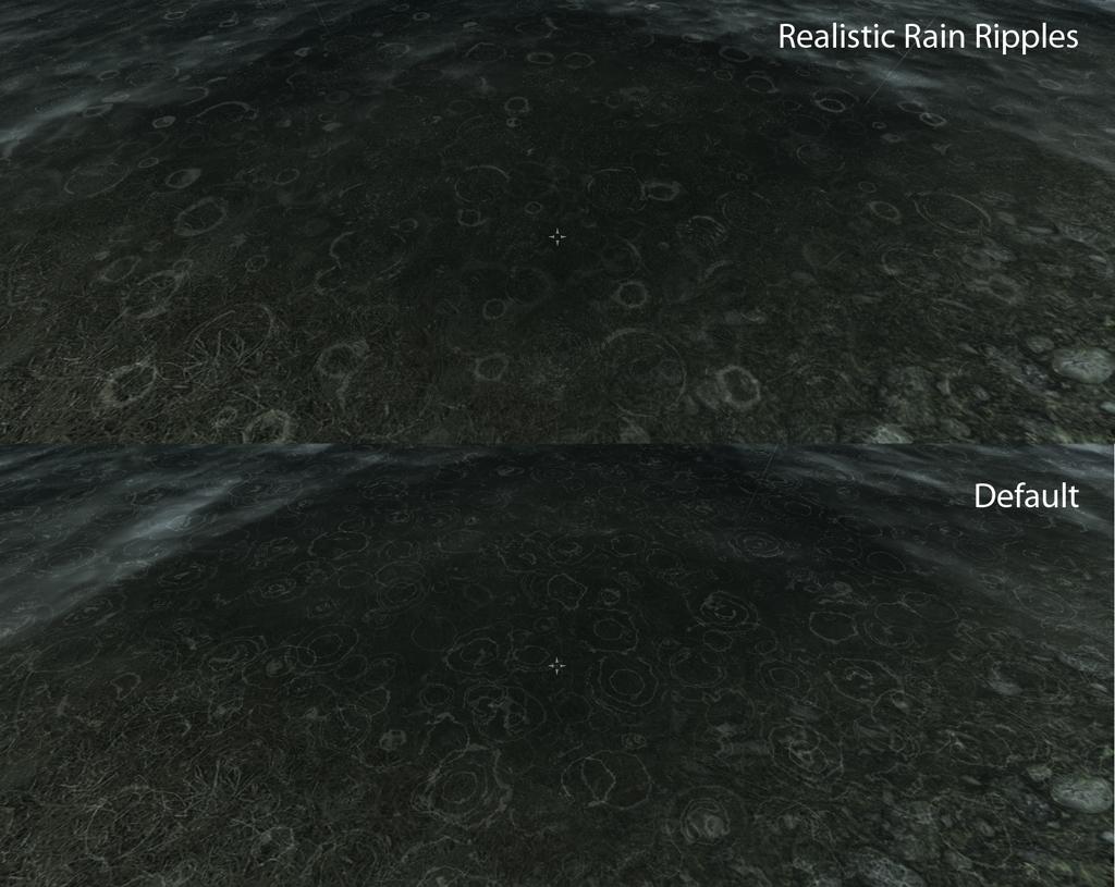 Плагин улучшает текстуру ряби на воде от капель дождя, добавляя ей детальности и реалистичности. По умолчанию устанавливаются текстура размером 2048х2048, что в 4 раза больше оригинальной. В папке "Дополнительно" вы найдете текстуру размером 1024х1024.