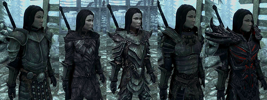 Изменяет различную женскую броню, делая ее более реалистичной. Отныне разница между мужским и женским вариантом не столь ощутима, женский вариант лишь слегка более узкий.