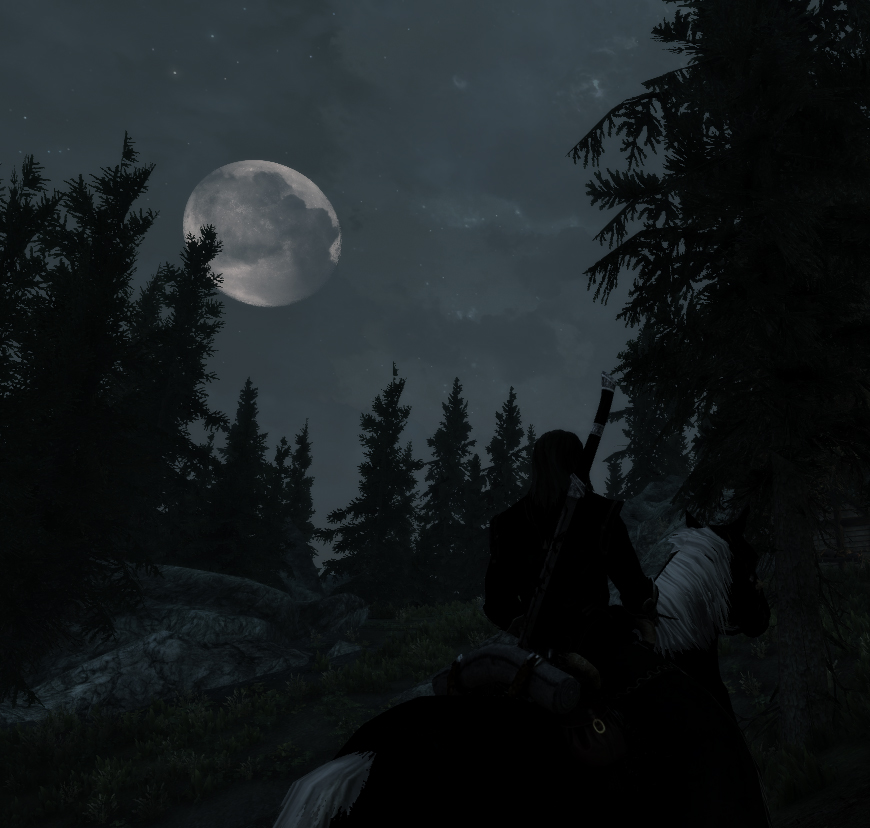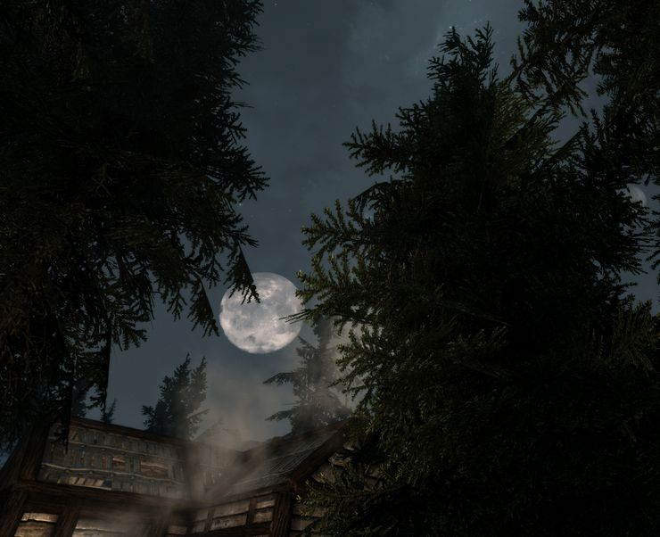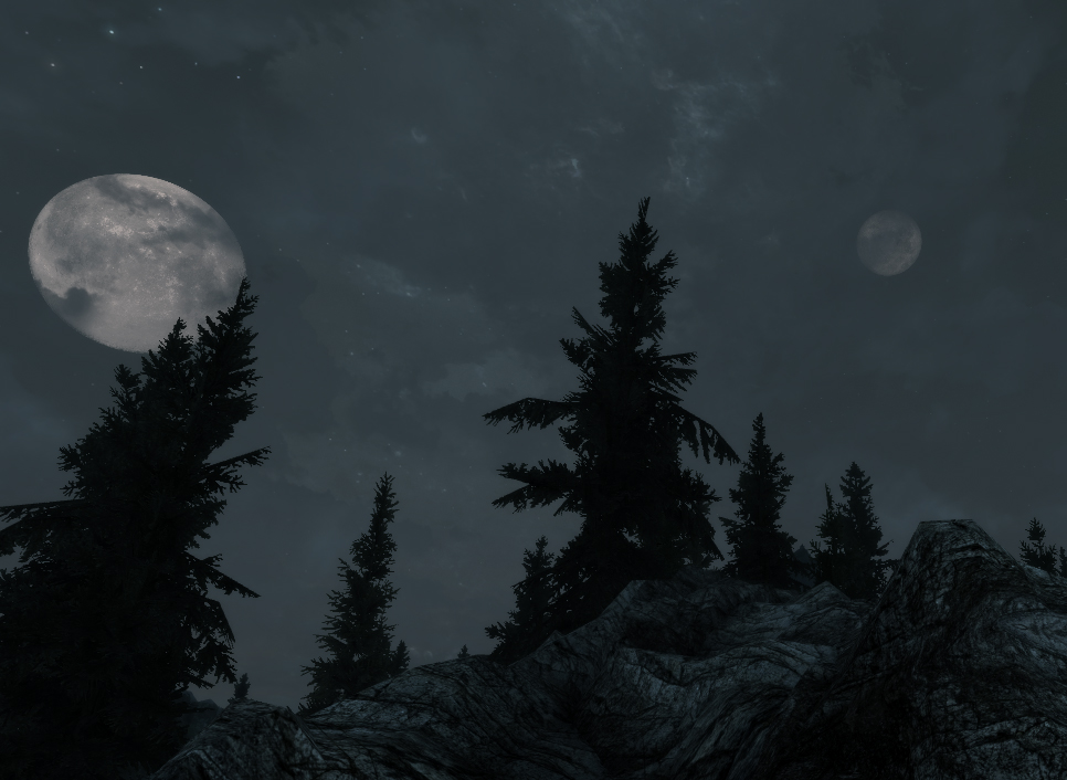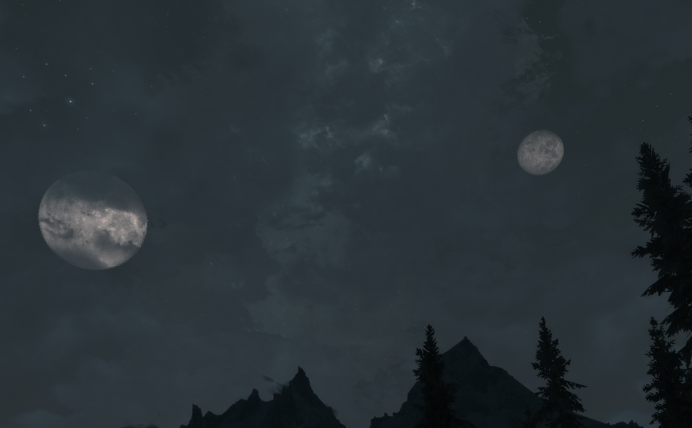 Тамриэль - это не земля!!!!!!!!!!!!!!!!!!!!!!! Там нет луны, и звёзд там тоже нет, огни на небе это чёрные дыры в другие миры!