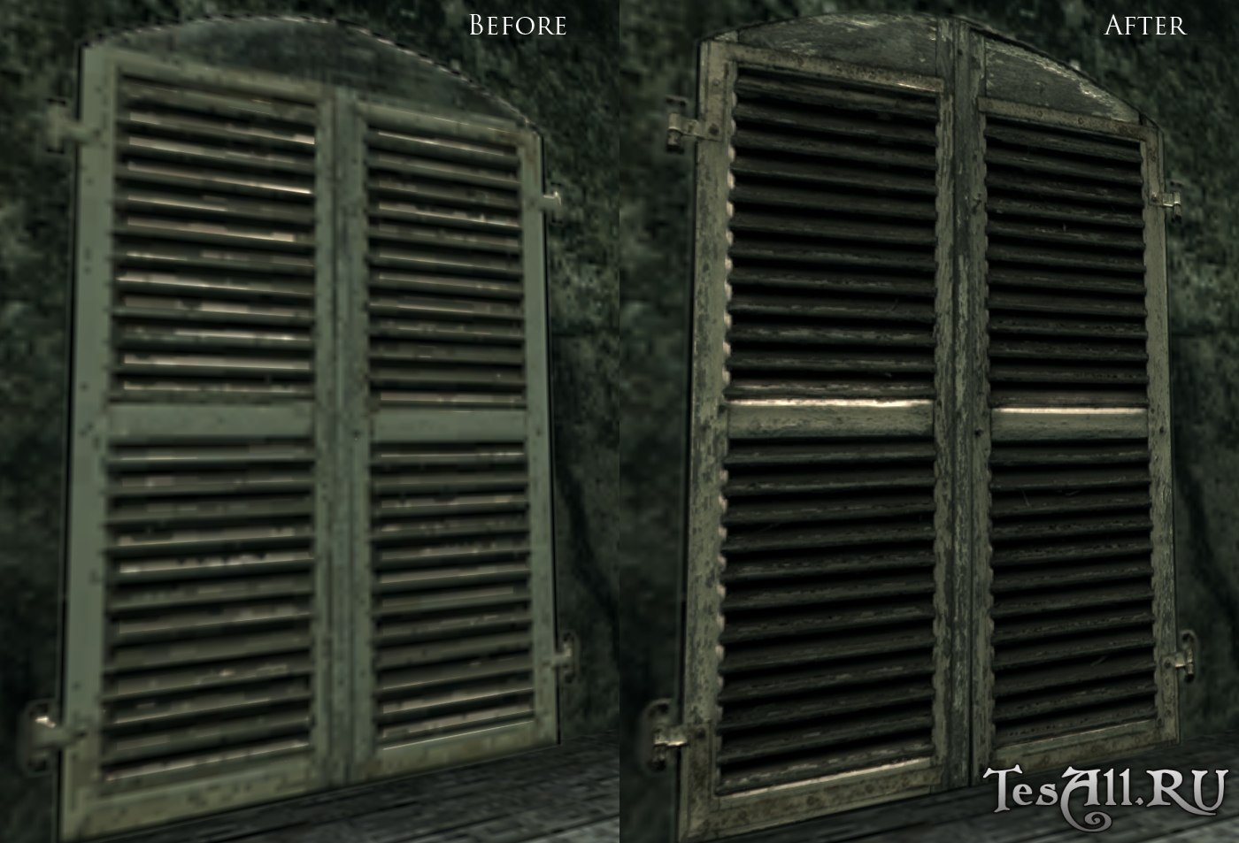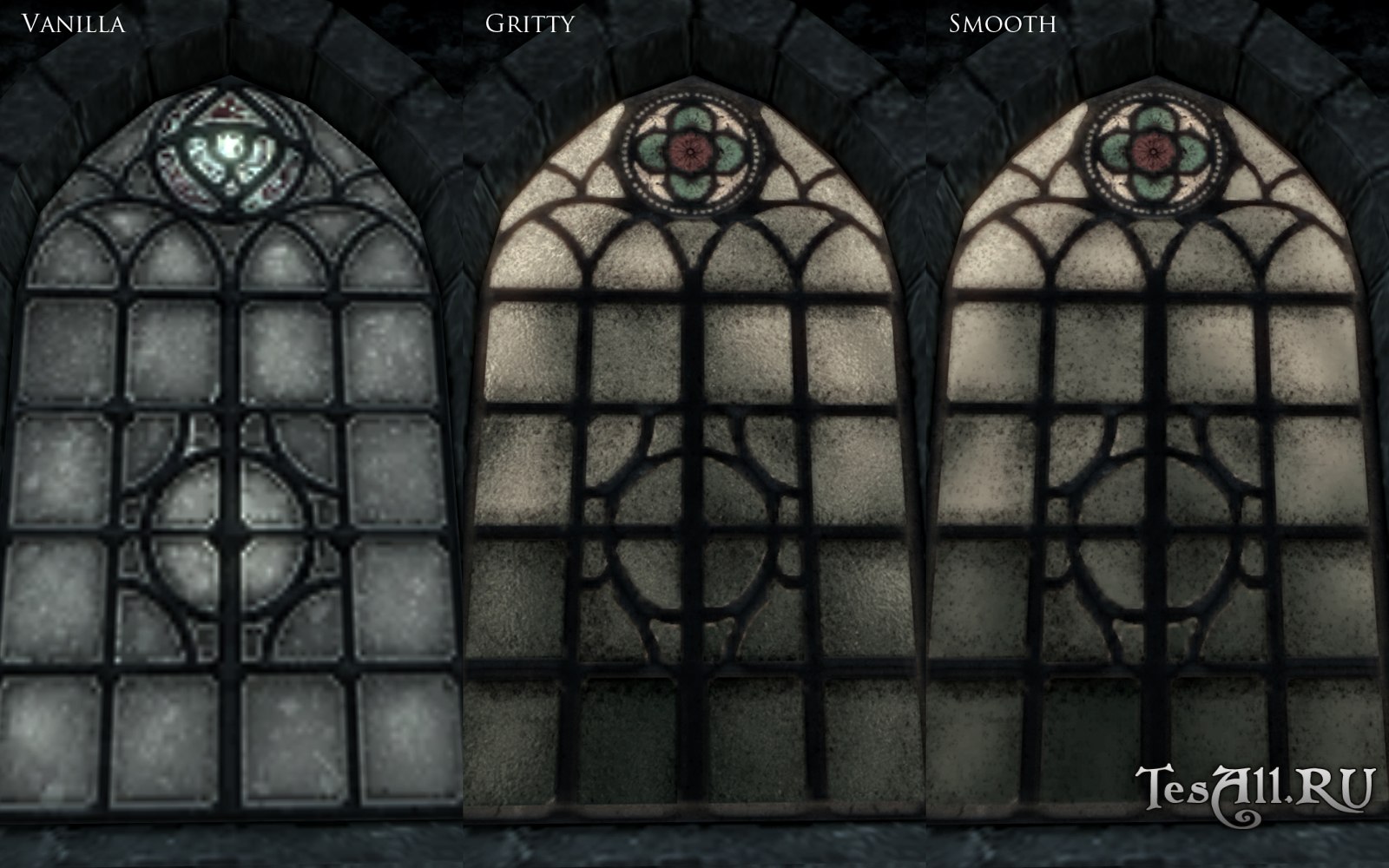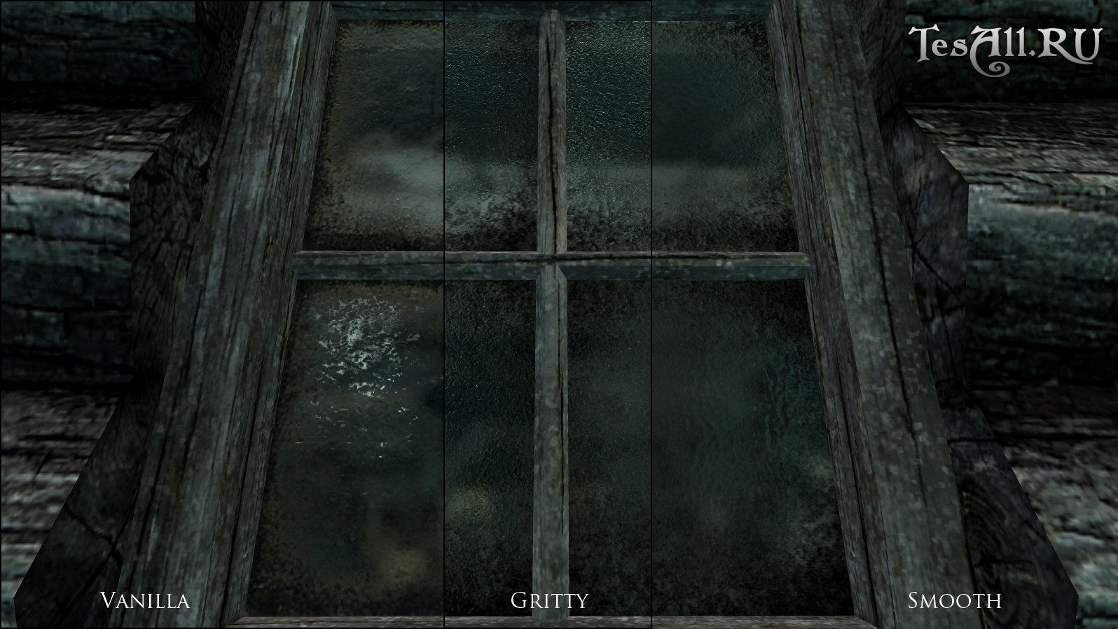 Мод улучшает текстуры рам и стекол в окнах во всех городах, на фермах, а так же во дворцах и Хротгаре. Толстое грубое стекло как нельзя лучше подходит к архитектуре Скайрима.