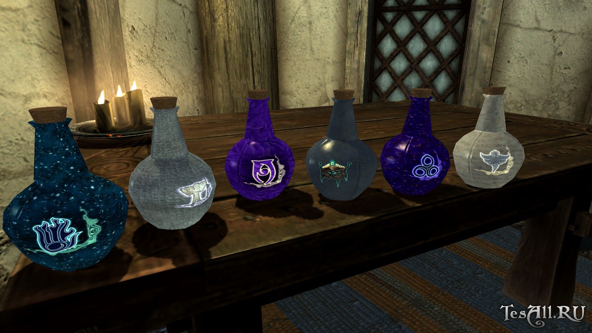 Данный мод добавляет около 150 новых текстур в высоком разрешении с целью создания особой бутыли для каждого зелья.