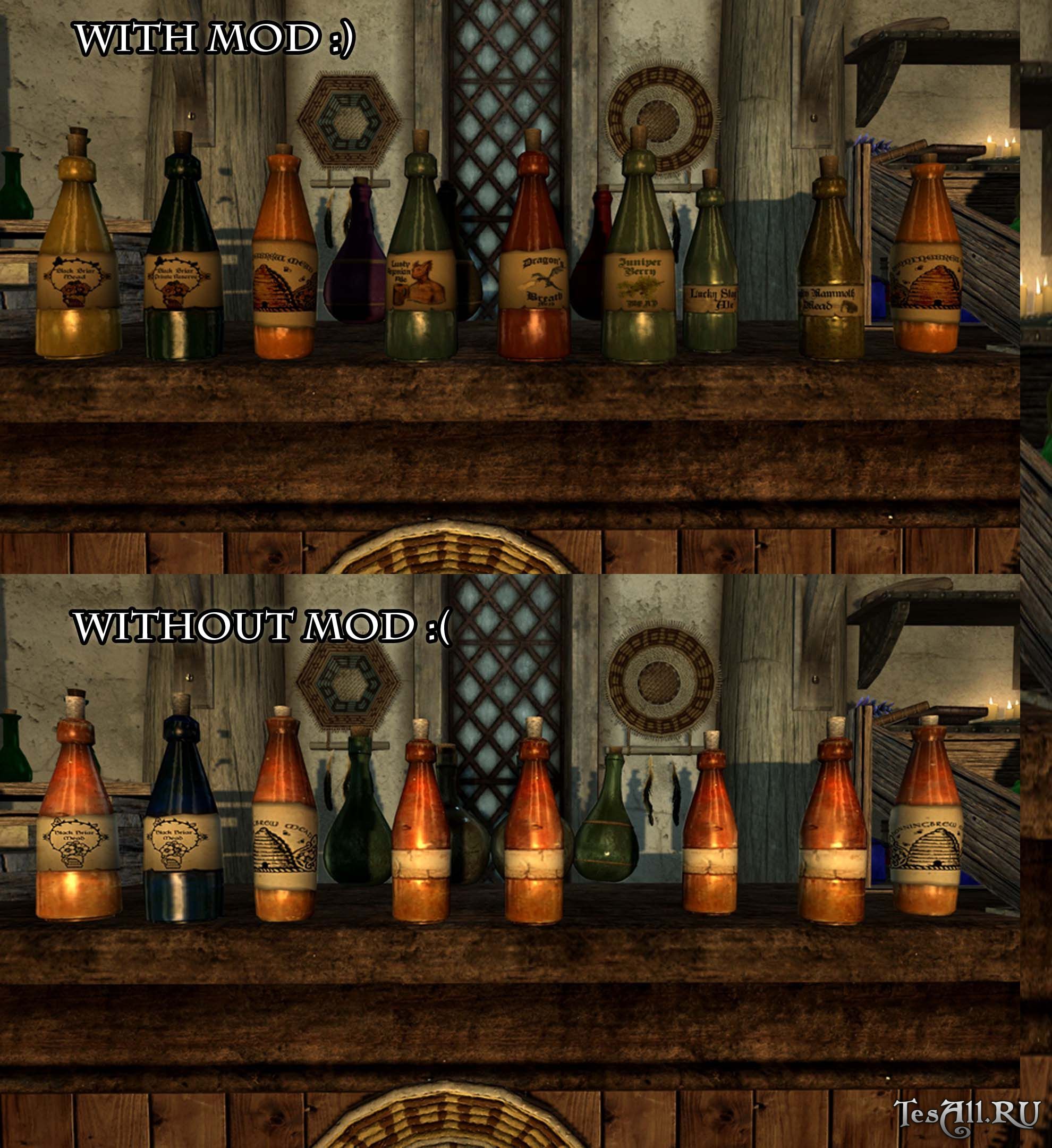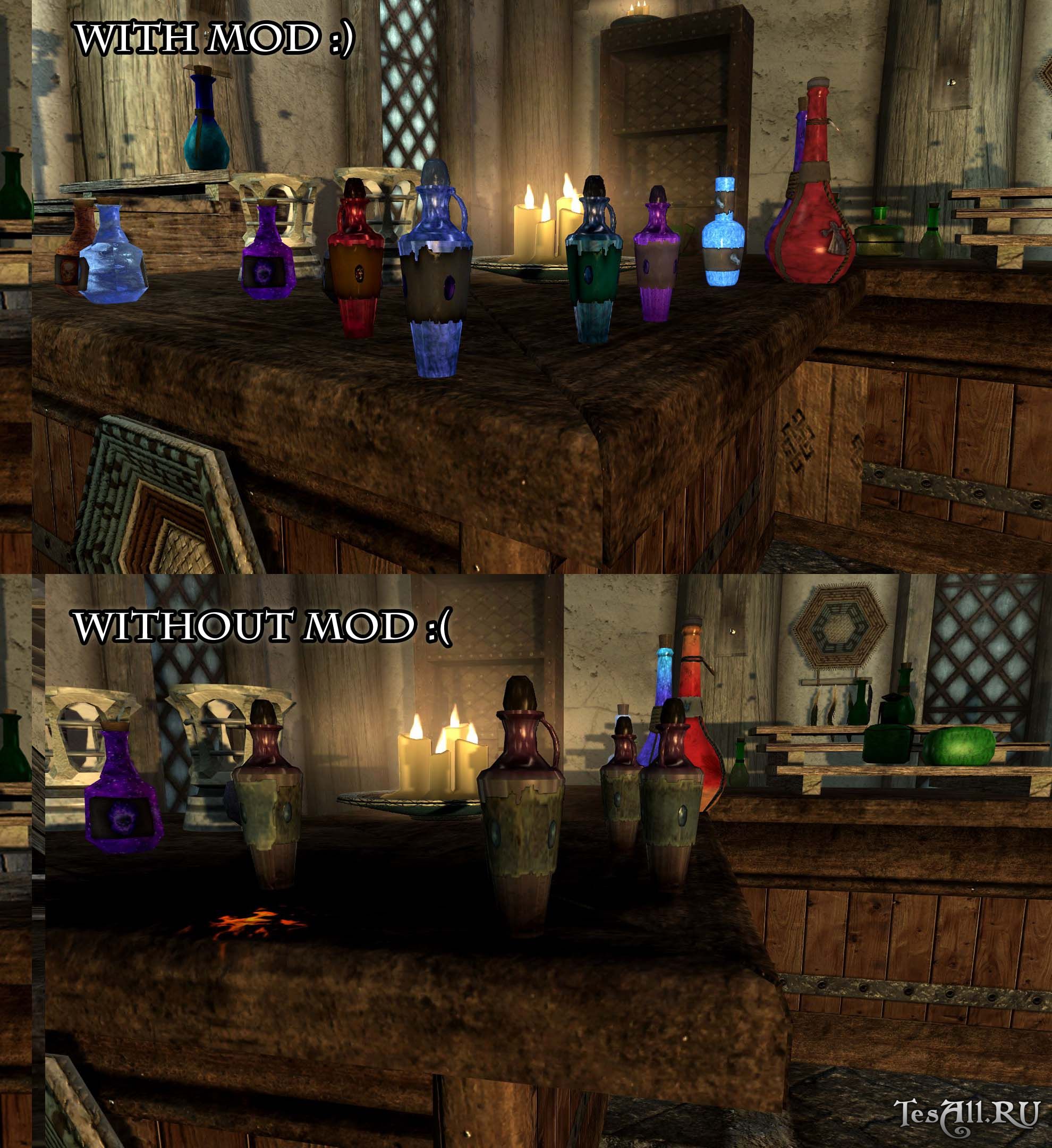 Этот мод представляет из себя продолжение серии ретекстуров от exray catt, мы уже знакомы с работой этого автора под названием Светящиеся и необычные зелья и яды (Radiant and Unique Potions and Poisons), данная модификация является небольшим дополнением к этому моду.