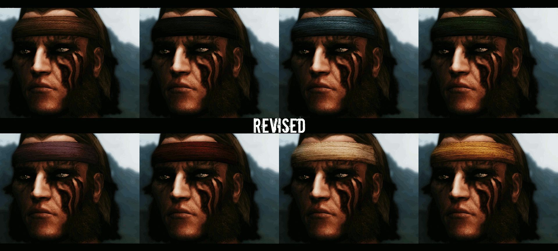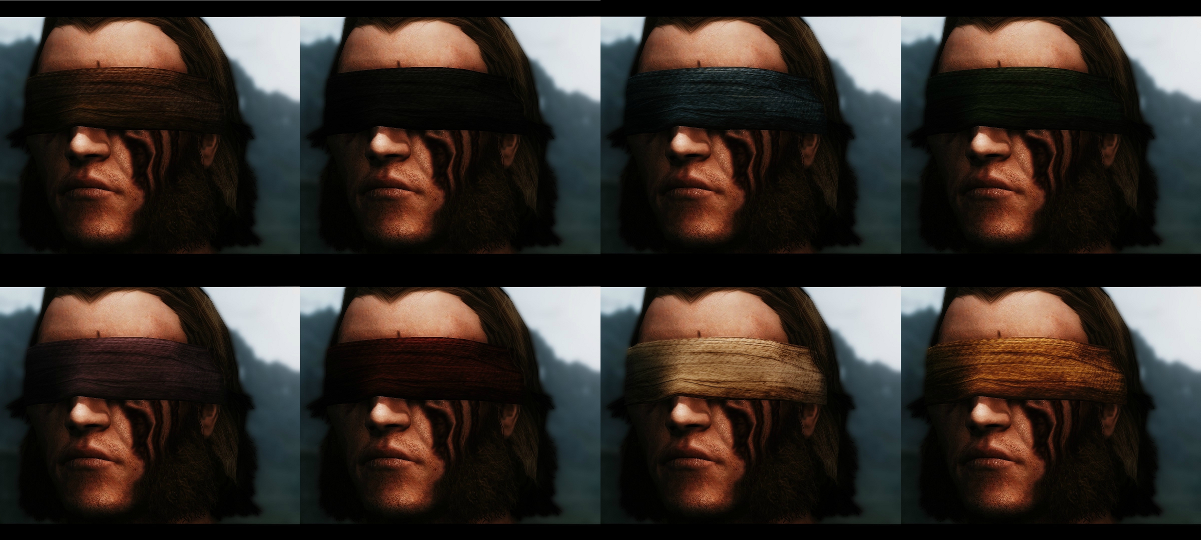 Качественный ретекстур модов "Повязки на глаза" и "Повязки на голову", делающий цвет повязок более реалистичным и соответствующим атмосфере Скайрима.
