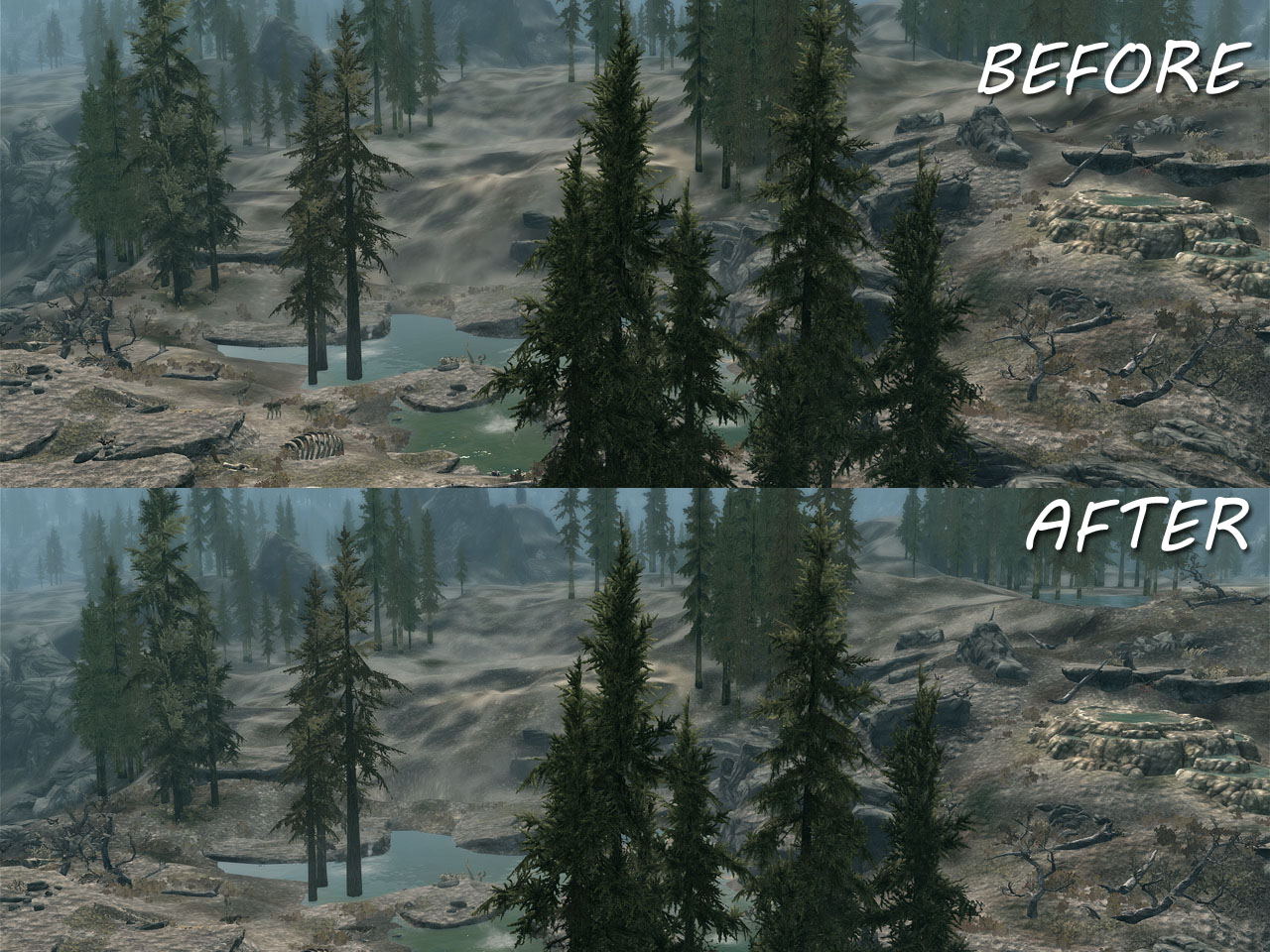 Небольшой, но полезный мод, который улучшает вид удаленного ландашфта, заменяя текстуры на новые с разрешением 1024х1024. Теперь дальняя местность выглядит намного четче и красивее. К тому же мод никак не затрагивает производительность.