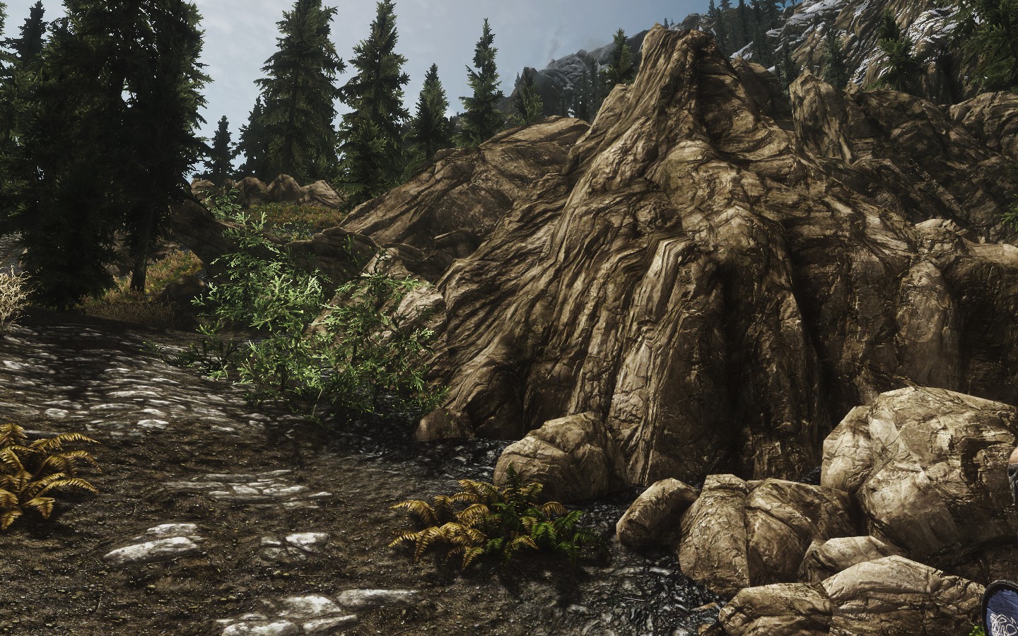 Этот мод заменяет текстуры скал и гор на более бурые, коричневатого оттенка, вместо серых Скайримских.