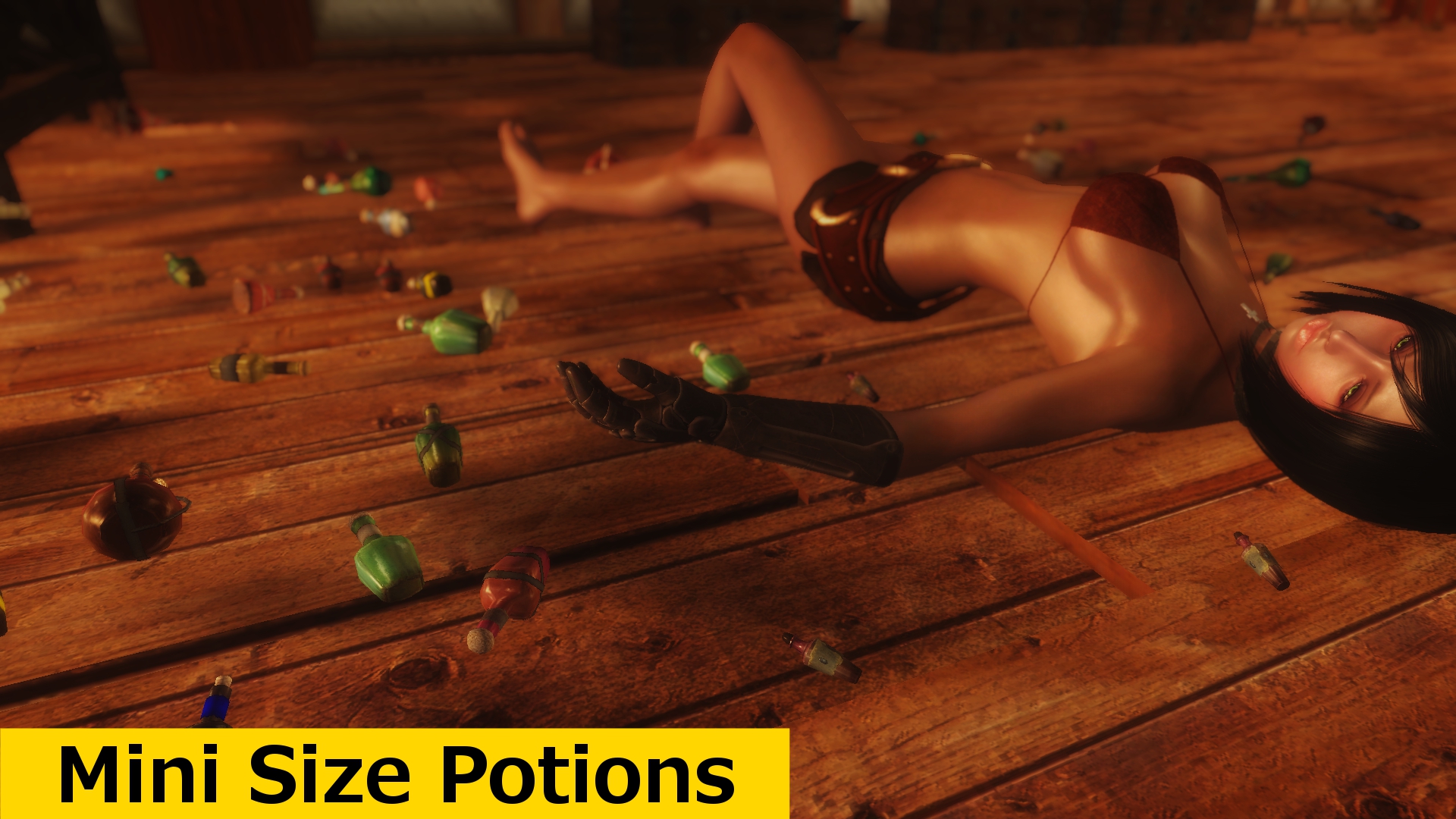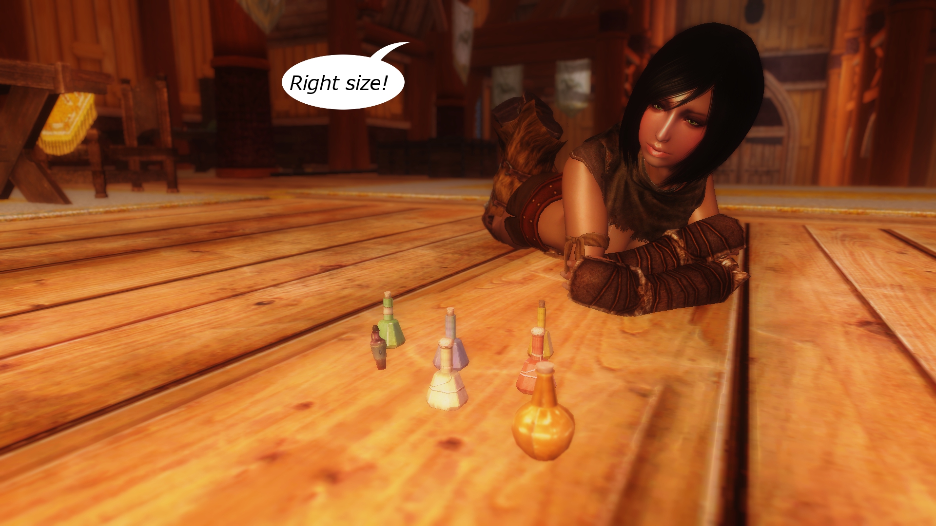Ха, оперативно Арсинис, сегодня только его на Нексус выложили. Пузырьки в оригинале и в правду были слонячими. Мне это всегда не нравилось, пара ингредиентов, а выходит нечто размером с целую бутылку вина. Но автор пожалуй переборщил с уменьшением, я последовал его совету и сделал себе в NifSkope нечто среднее между ванилью и размером из этого мода. А то пузырёчки не всегда теперь и заметишь. Автору изначально надо было сделать 2-3 варианта на выбор с размером