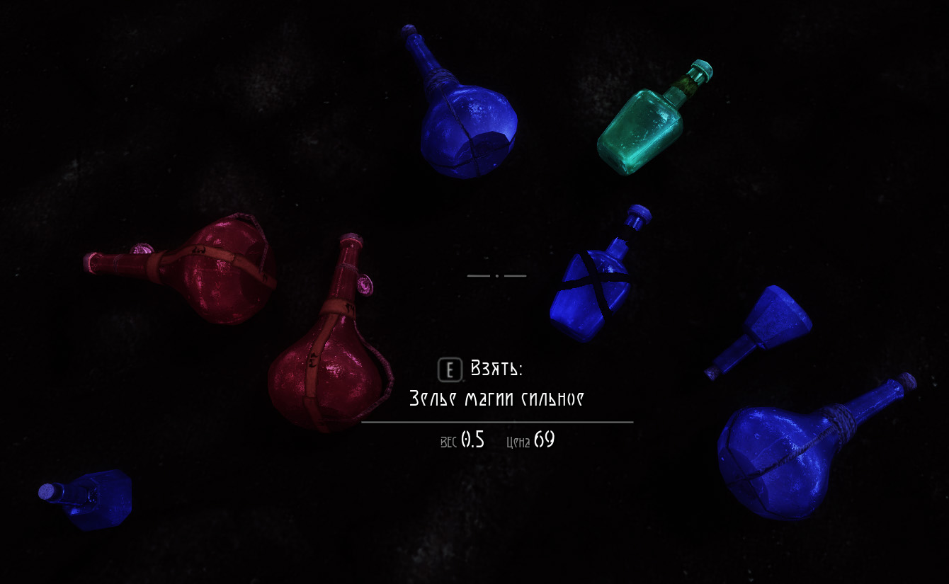 Ну и, в-третьих, мне подумалось, что неплохо было бы теперь зельям светиться, пока не все, но зелья лечения, магии и запаса сил теперь светятся, подходил к вопросу аккуратно, чтобы не превратить их в фонарики, свечение не сильное.