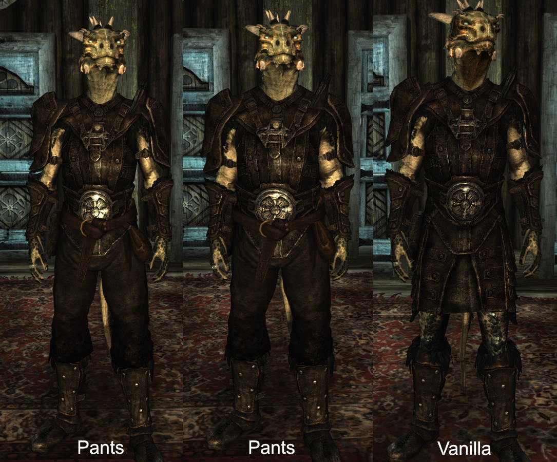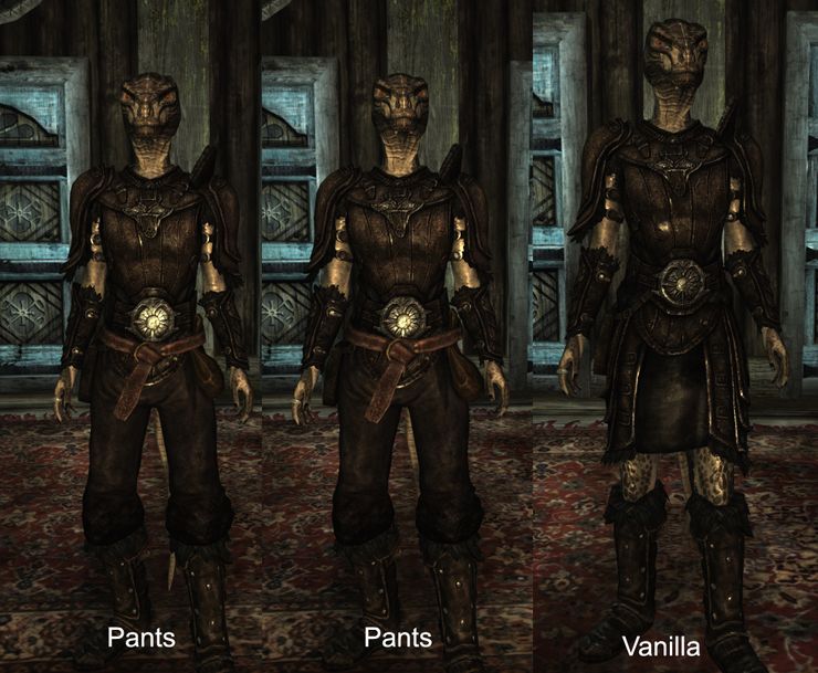 Отличный реплейсер стандартной кожаной брони. Сделанный специально для тех , кому не понравились юбки у брони в Скайриме. Этот мод заменит юбку у кожаной брони на штаны. В архиве есть как реплейсер, так и отдельная версия ( с крафтом и лвл-листами). В отдельной версии кожаная броня со штанами будет называться не "Кожаная броня", а "Кожаный доспех ".