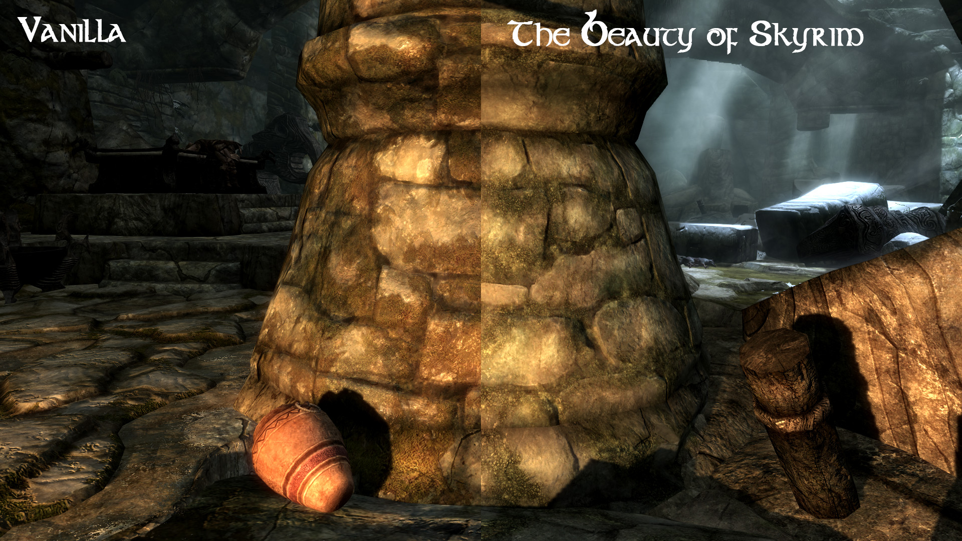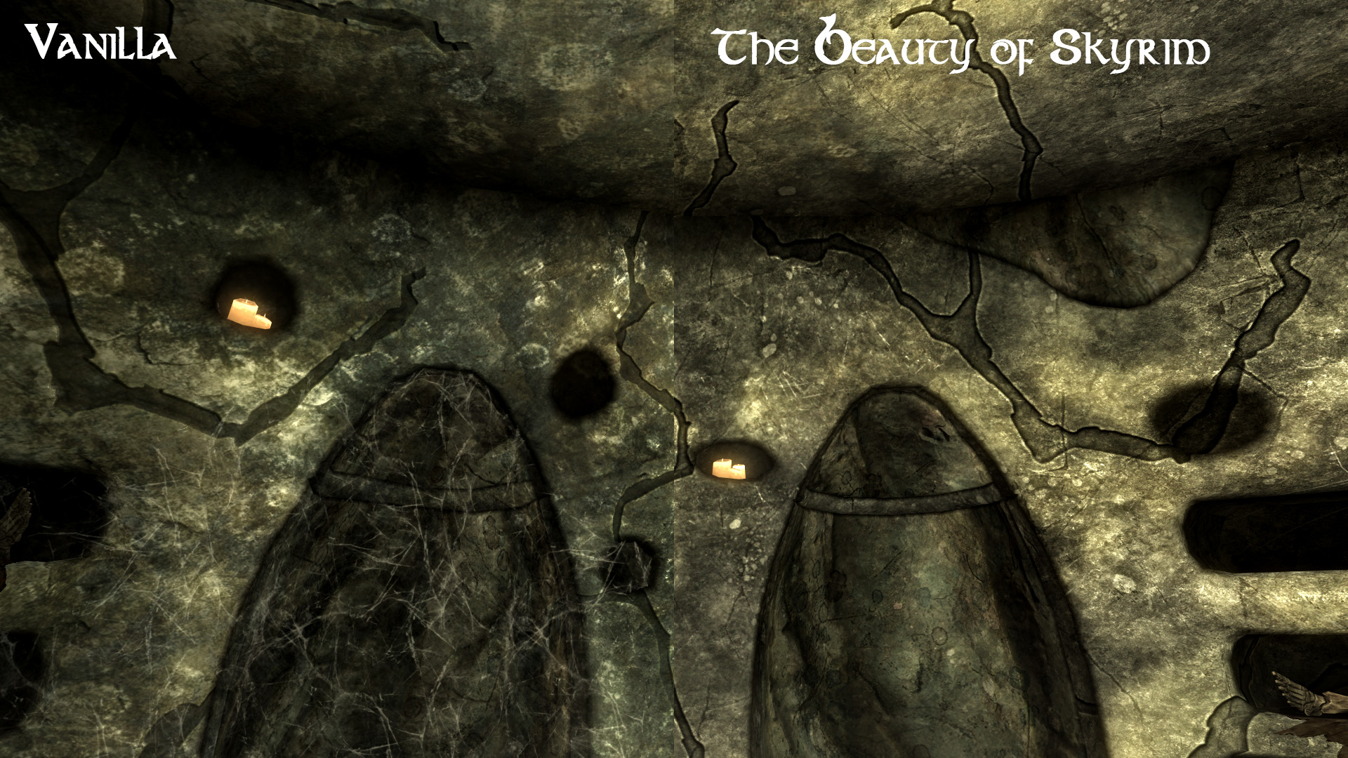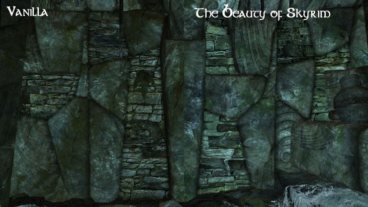 Красивый ретекстур подземелий Скайрима. Заменяет унылые оригинальные текстуры на новые реалистичные и высококачественные.